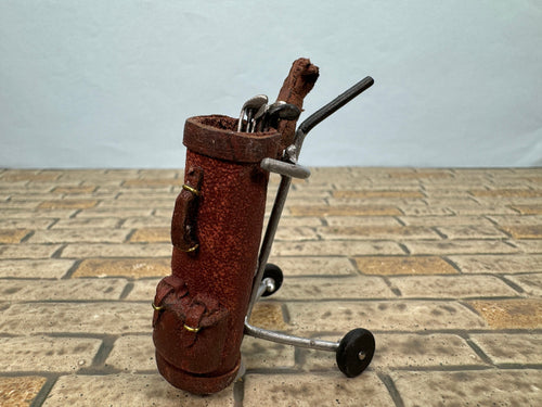 Dollhouse Miniature ~ Artisan Handmade Leather Golf Bag With Walking Cart