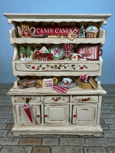 Dollhouse Miniature ~ Artisan Laura Crain - Dollhouse Land - Signed Handmade Decorated Christmas Kitchen Cabinet