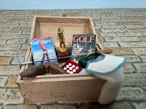 Dollhouse Miniature ~ Artisan Taylor Jade Handmade Decorated Chest Golf Accessories