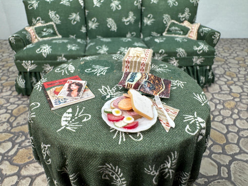 Dollhouse Miniature ~ Artisan Signed Handmade 2 Piece Green Living Room Couch & Table Furniture Set