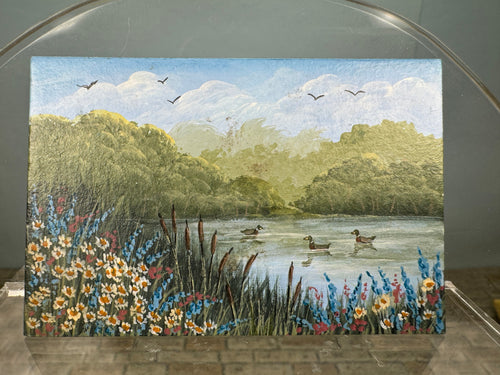 Dollhouse Miniature ~ Artist Karry Johnson "Quiet Duck Pond" 2001 Painting