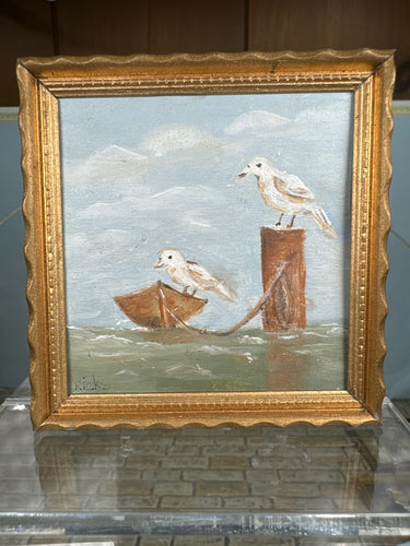 Dollhouse Miniature ~ Artist B. Ricks 1987 Seaguls Oil Painting Original