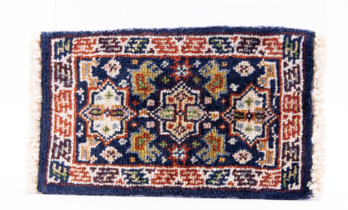 Dollhouse Miniature ~ Blue & Peach Petit Point Rug by Ursula Sauerberg 5" x 8 5/8"