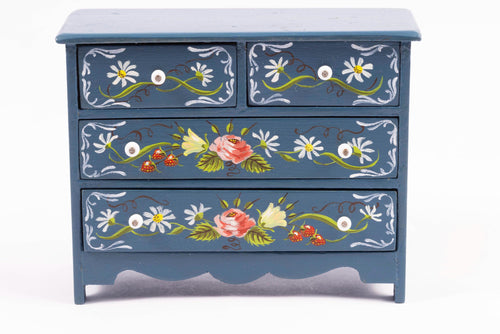 Dollhouse Miniature ~ Blue Chest Painted Flowers by Shirley and Jim Hillhouse