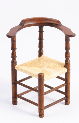 Dollhouse Miniature ~ George Hoffman Curved Back Chair - Handmade with Rush Seat