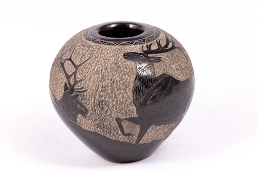 Dollhouse Miniature ~ Gloria Garcia Goldenrod - Native American Carved Pottery Pot with Antelope
