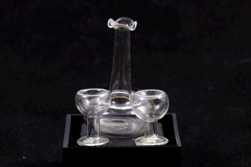Dollhouse Miniature ~ Glass Decanter with 2 Wine Glasses - Hand Blown & Vintage