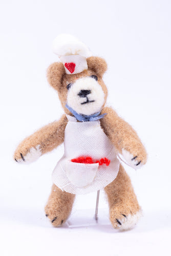 Dollhouse Miniature ~ Handmade Teddy Bear As a Chef Stuffed Animal Toy - From Ursula Sauerberg Estate