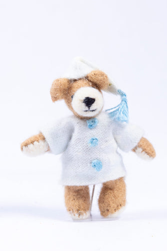 Dollhouse Miniature ~ Handmade Teddy Bear Dressed in Night Shirt & Hat Stuffed Animal Toy - From Ursula Sauerberg Estate