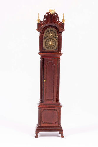 Dollhouse Miniature ~ Mahogany Bespaq Grandfather Clock with Gold Accents
