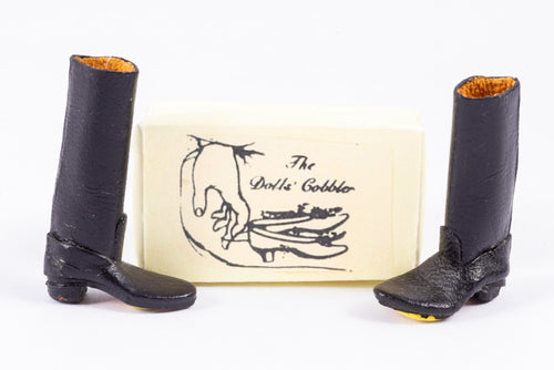 Dollhouse Miniature ~ Vintage Dolls Cobbler Black Riding Boots & Box - Lee Lefkowitz Estate