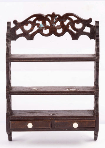 Dollhouse Miniature ~ Wooden Hanging Shelf with Fretwork & Drawers