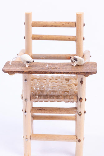 Dollhouse Miniatures ~ High Chair With Mice - Ursula Sauerberg Estate