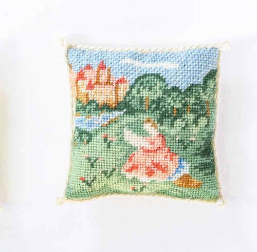 Needlepoint Pillow with Castle & Woman Design - Ursula Sauerberg Estate