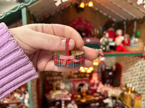 Red Plaid Tartan Wooden Basket Christmas Festive Holiday Santa Claus Tis the Season Holly Jolly