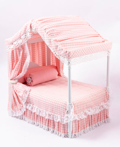 Ruffled Lace Pink & White Gingham Canopy Bed