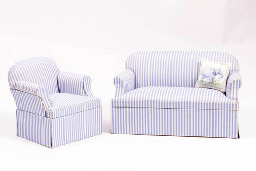 ☆ SALE ☆ 2pc Brown & Tan Striped Sofa and Arm Chair