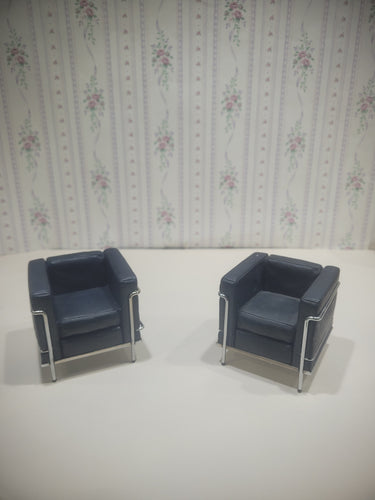 • 2 Black Faux Leather Chrome Art Deco Living Room Chairs