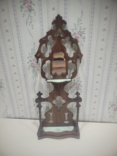 • Ornate Wooden Hall Tree w/ Faux Marble Accent Vintage