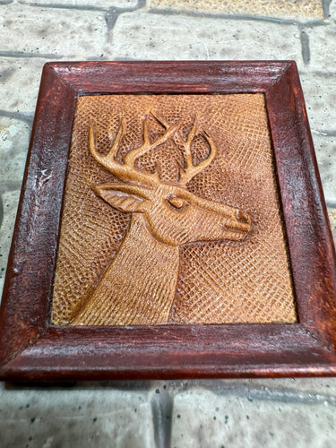 Vintage 1981 Artisan Signed Handmade Punched Leather Deer Artwork
