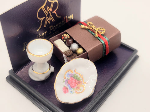 Dollhouse Miniature ~ 1:12 Scale, Box of Chocolates, Cup, and Plate by Reutter Porcelain