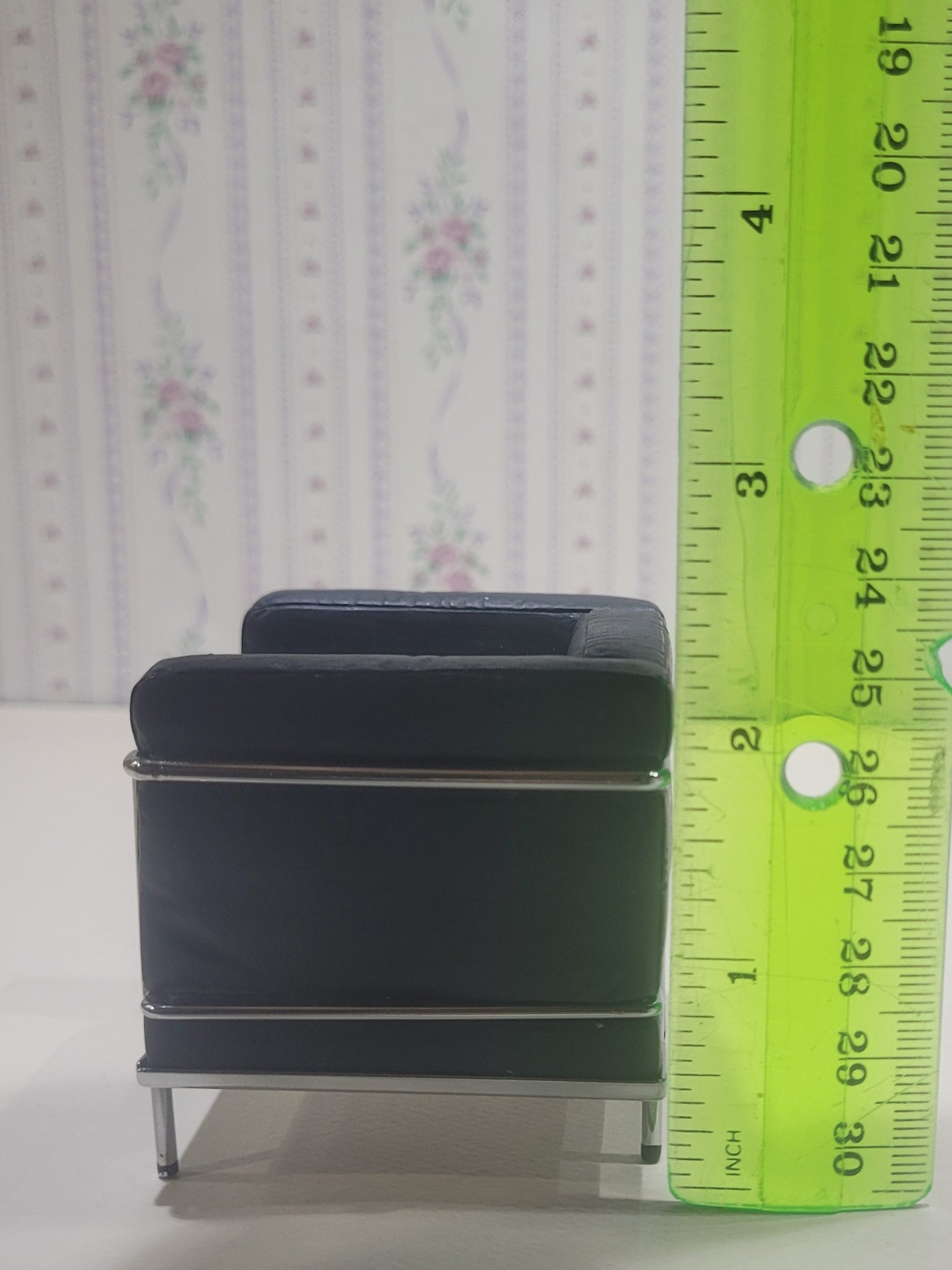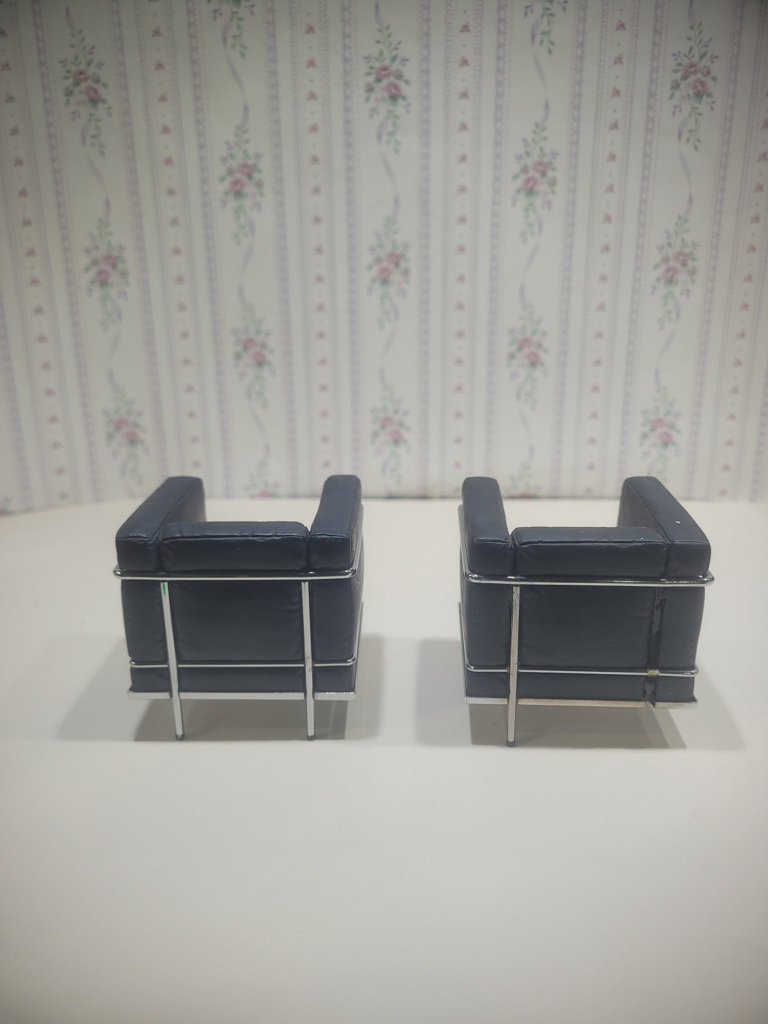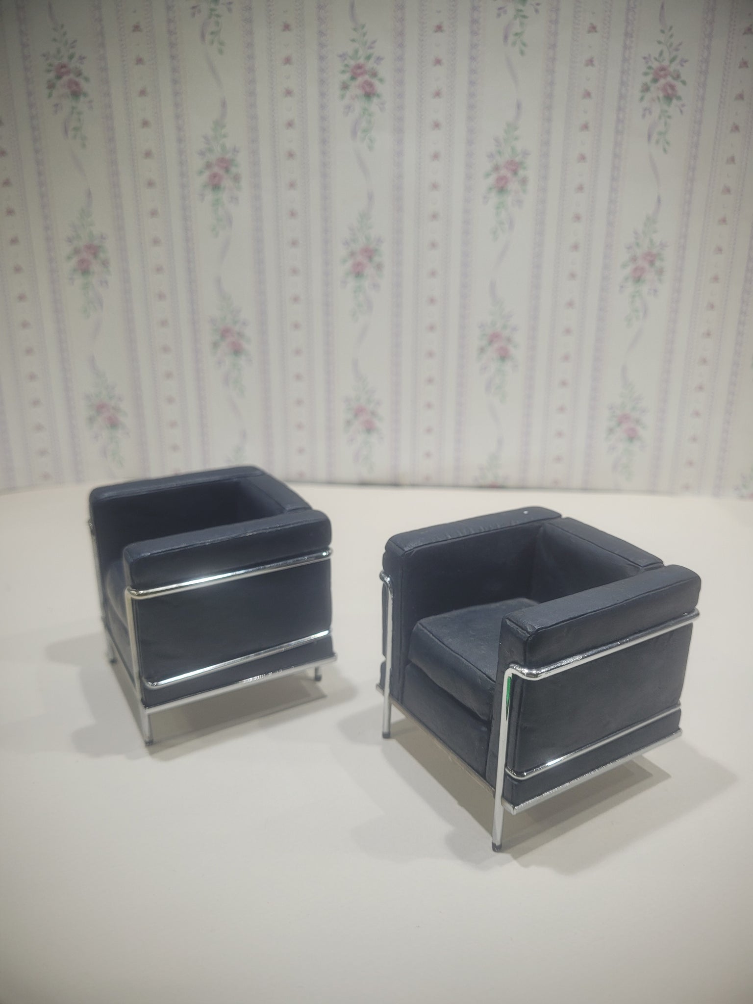 Set of 2 Black Faux Leather Chrome Art Deco Living Room Chair