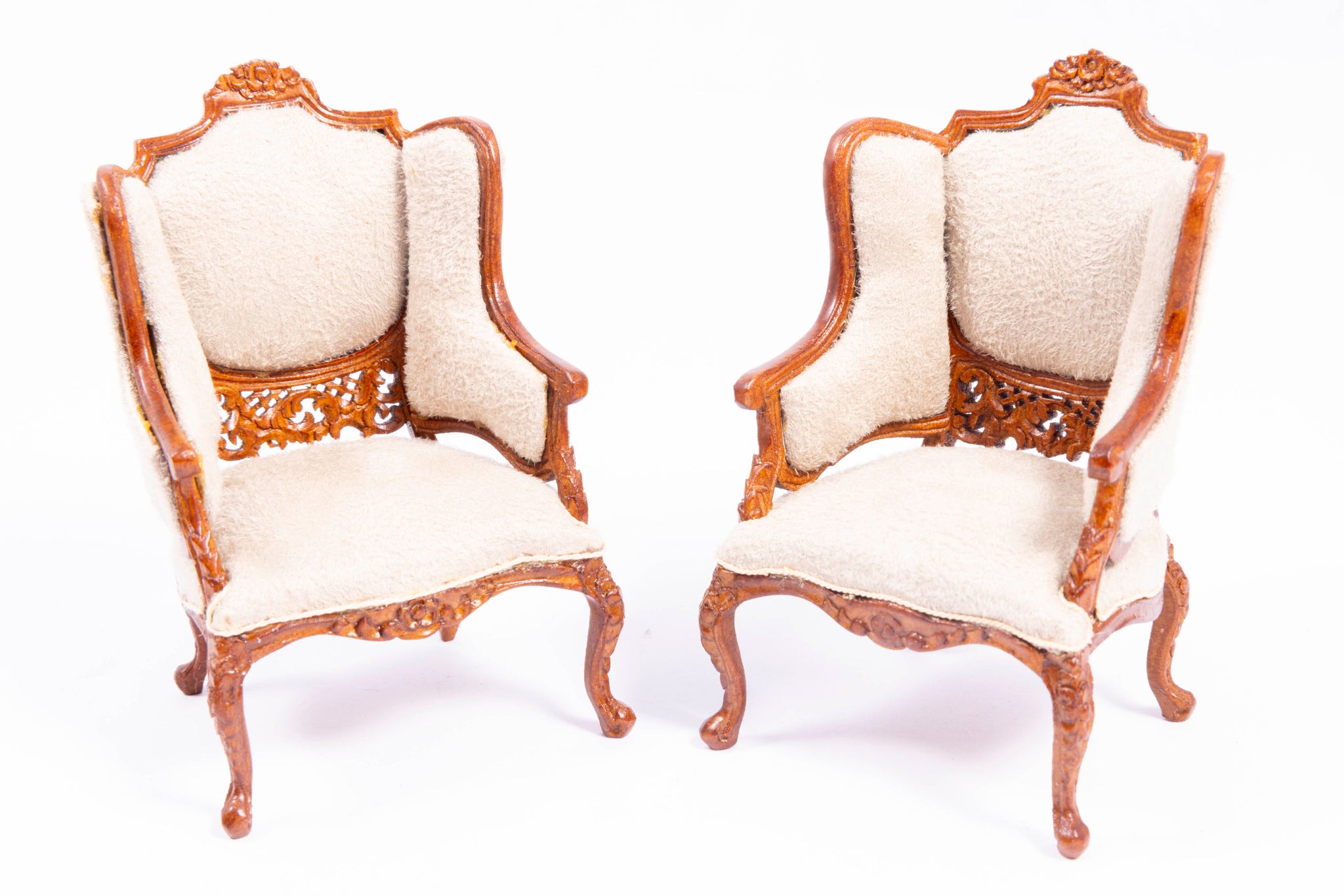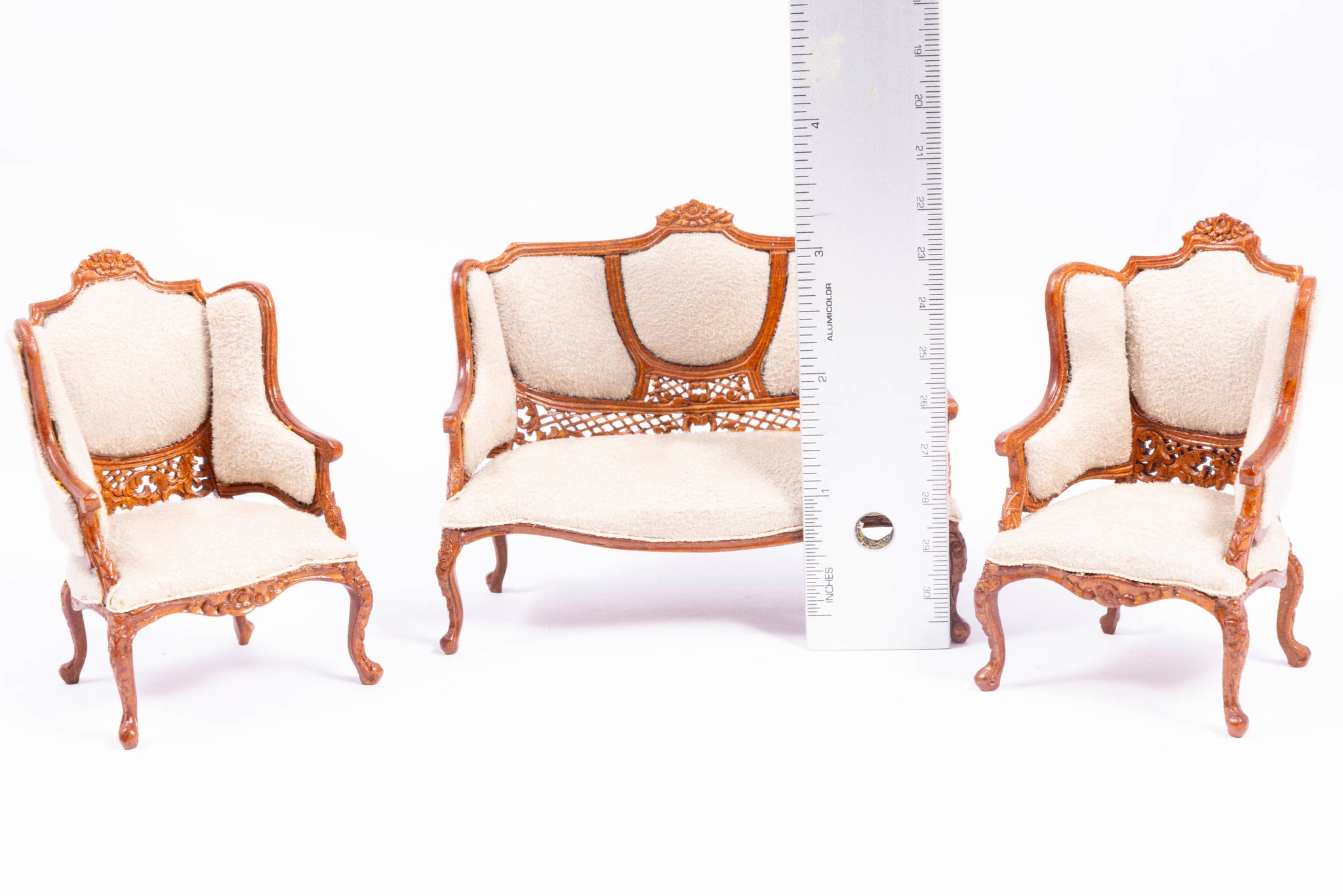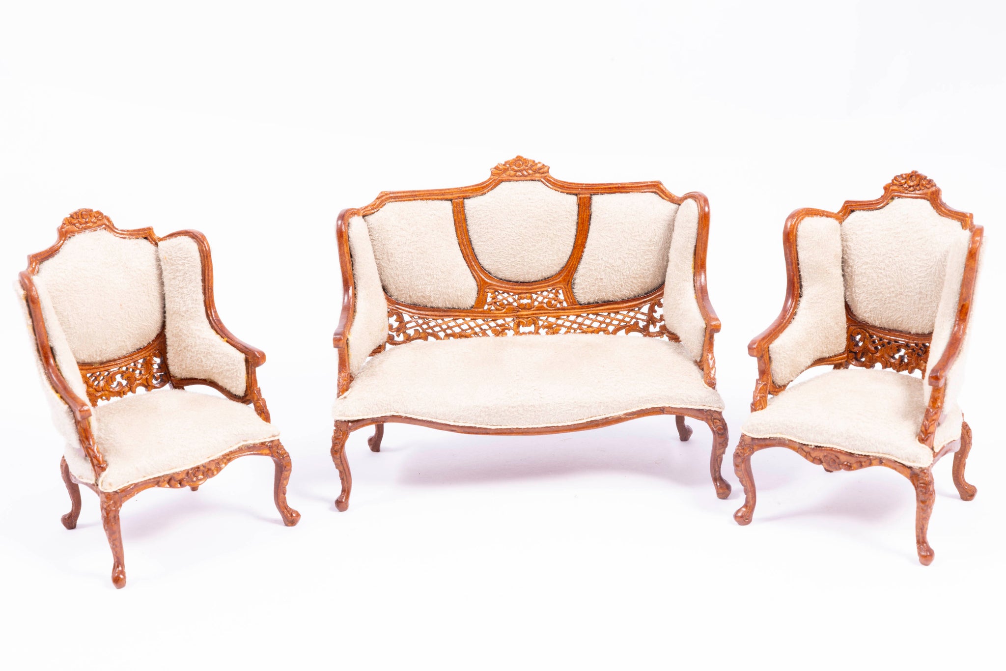 A terrific set by Bespaq. Soft fabric, off white with beautiful fretwork on all three pieces.
