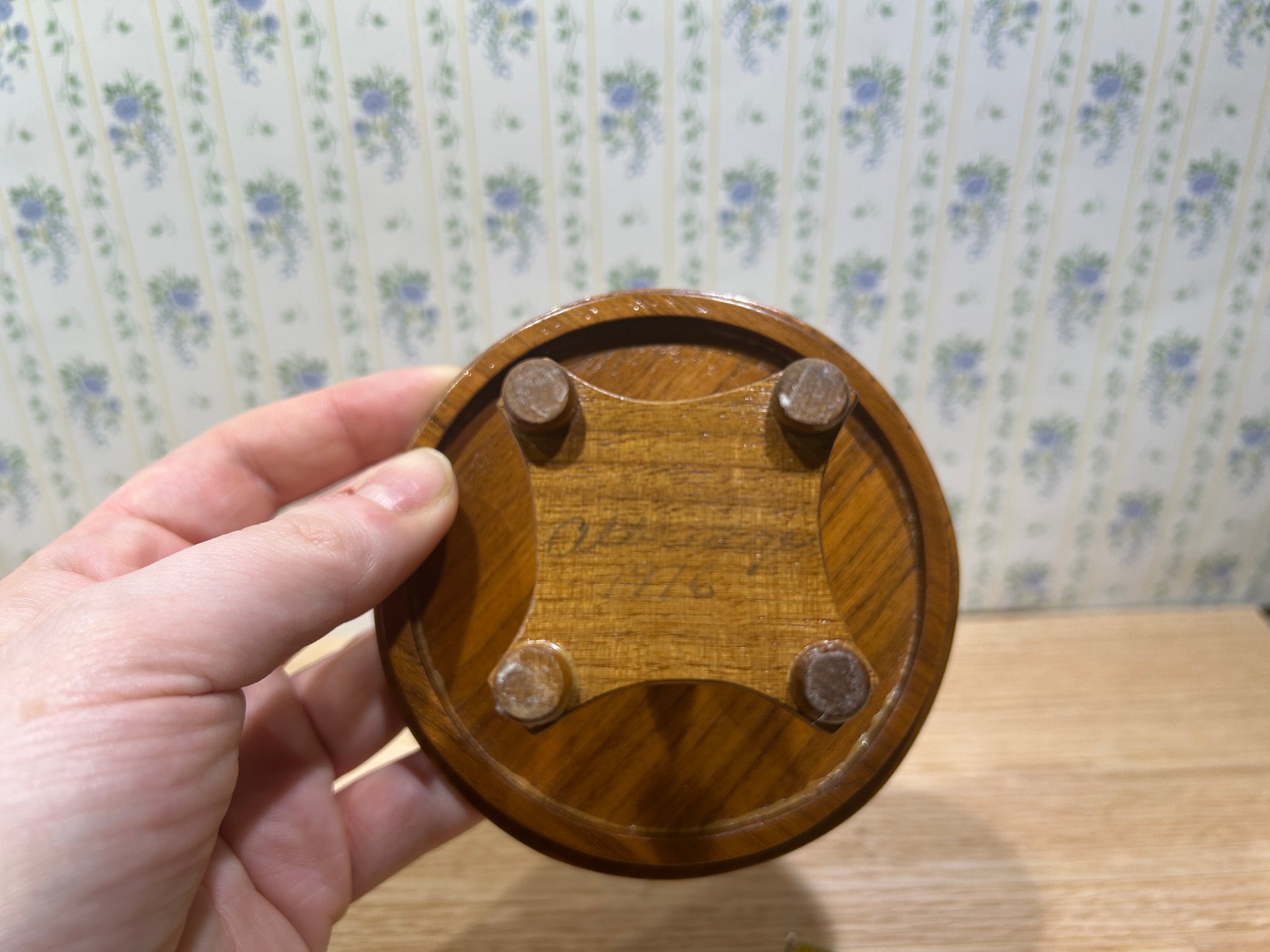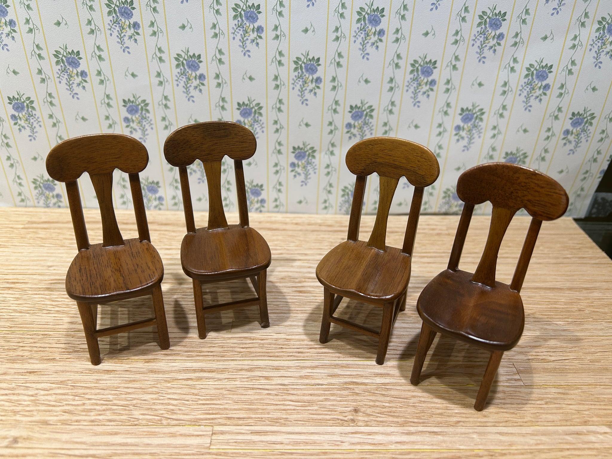 Handmade wooden kitchen table and four chairs. Made in 1976. Signed.