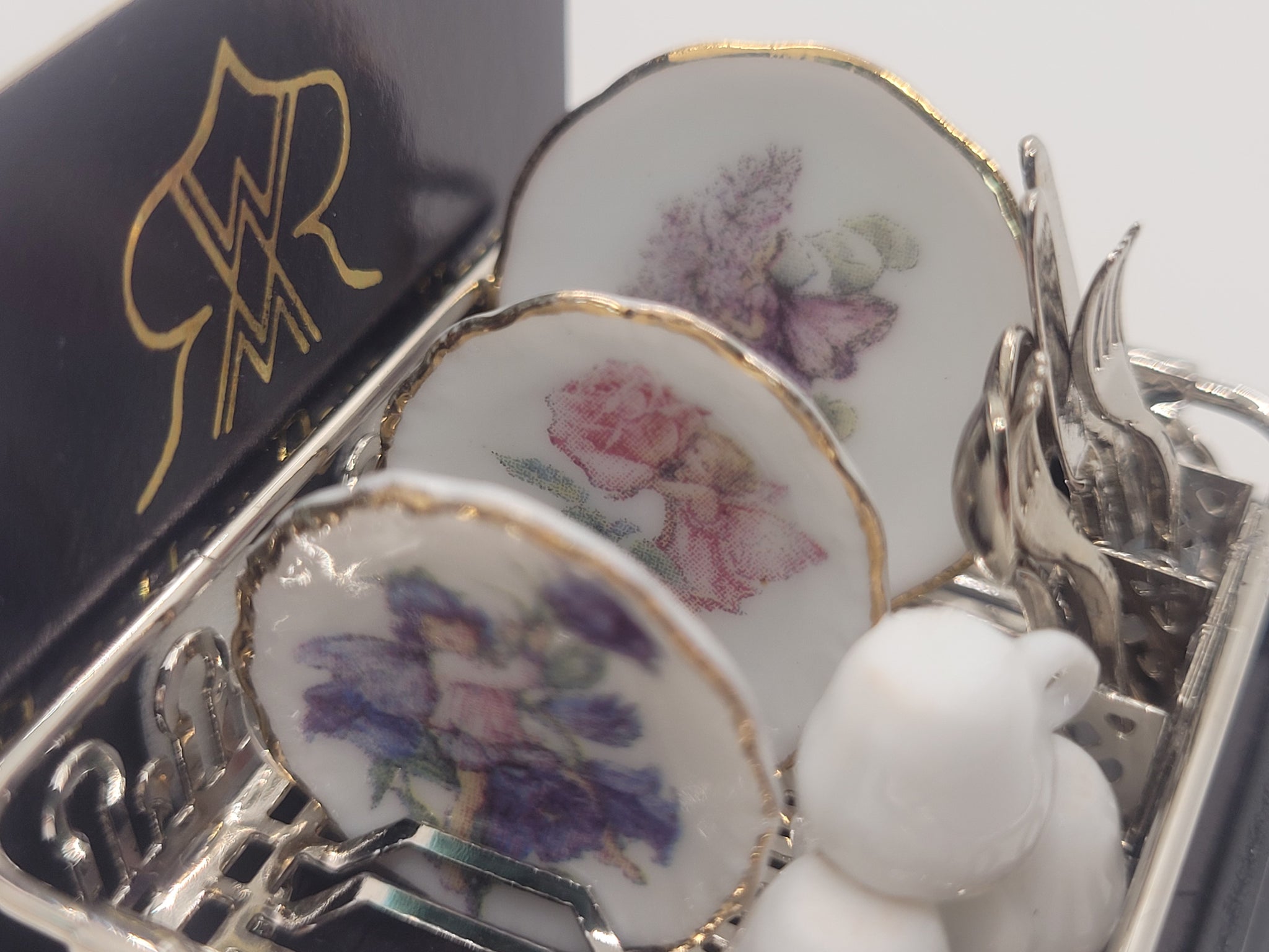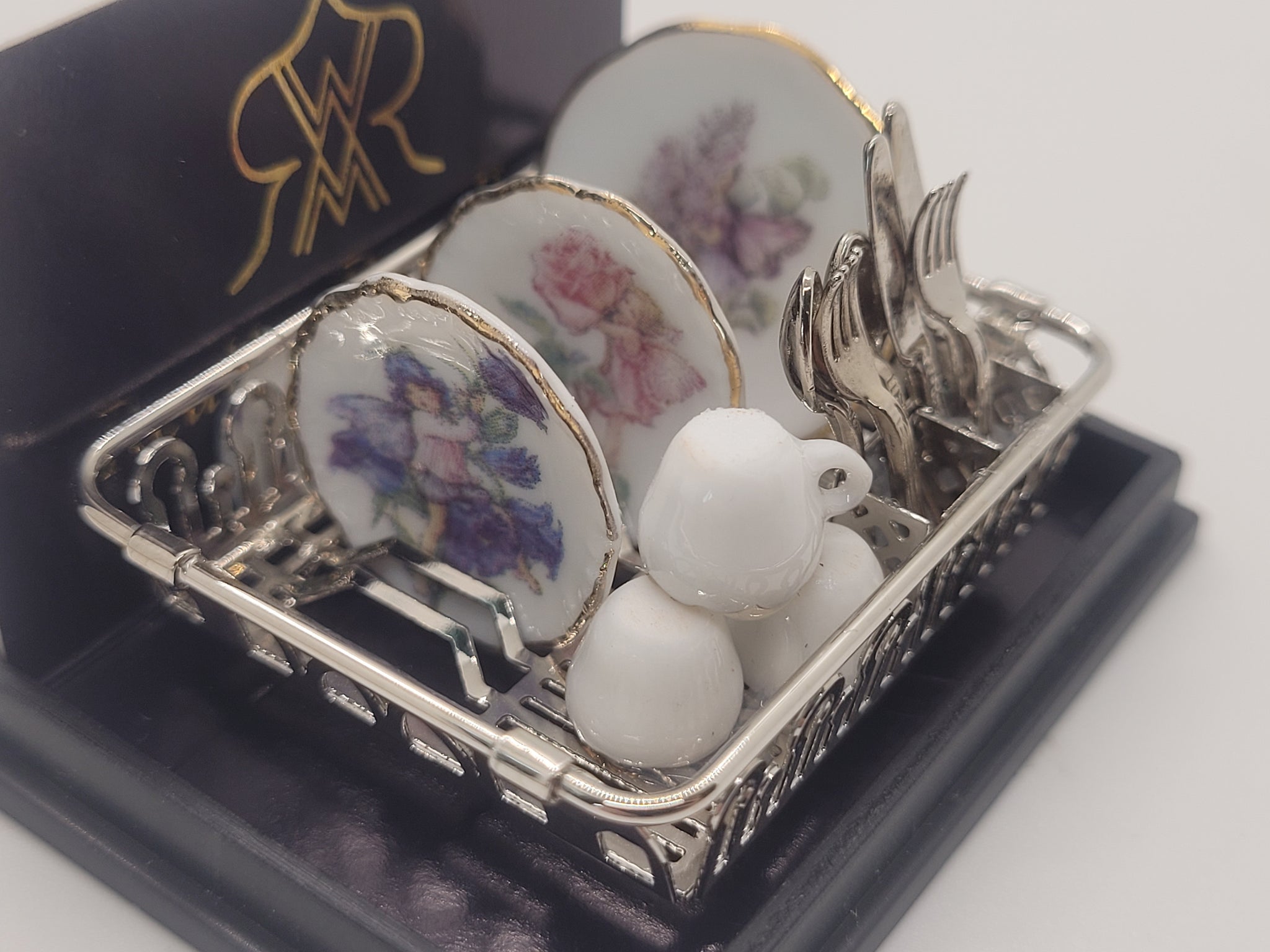 This Drying Rack contains 3 Floral/Fairy Plates with 3 cups and Silverware.