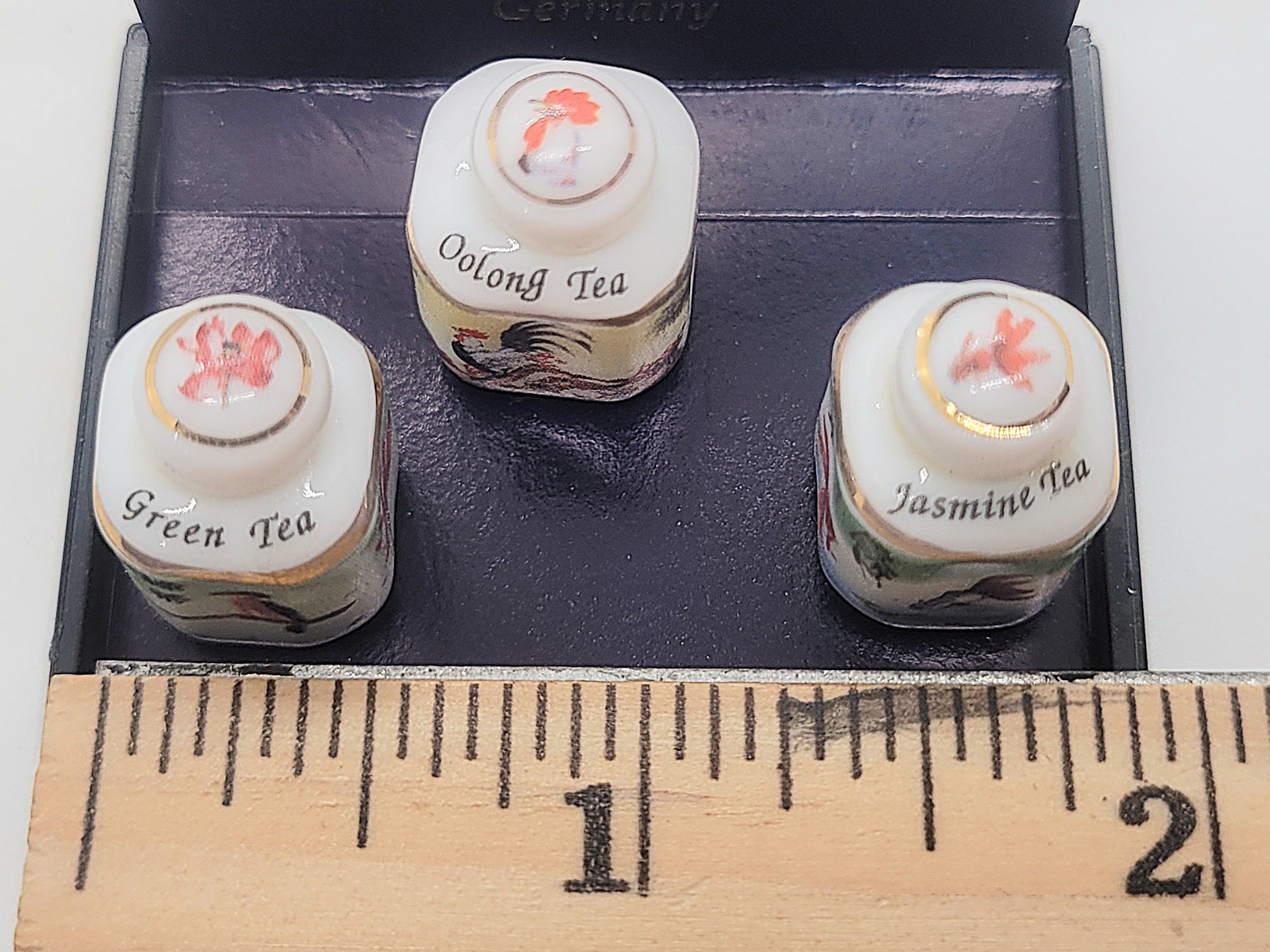 Three Labeled Tea Jars (Jasmine, Oolong, Green)