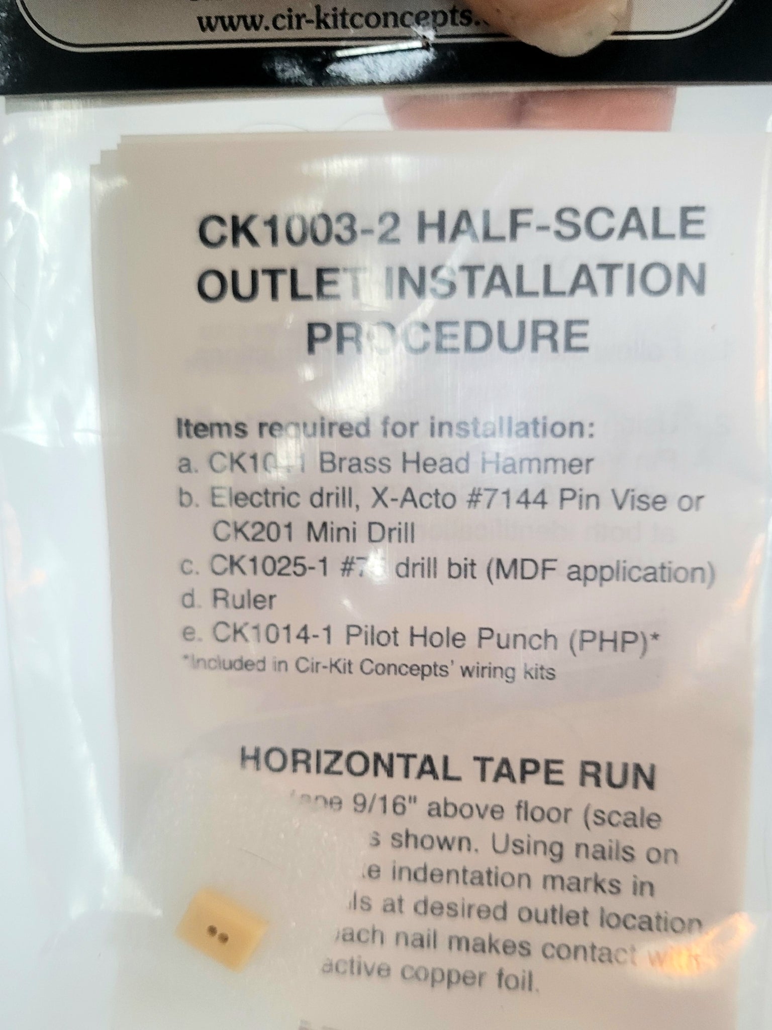 Cir-Kit Half-Scale Wall Outlet, Product #CK1003-2. Comes with Installation Manual.