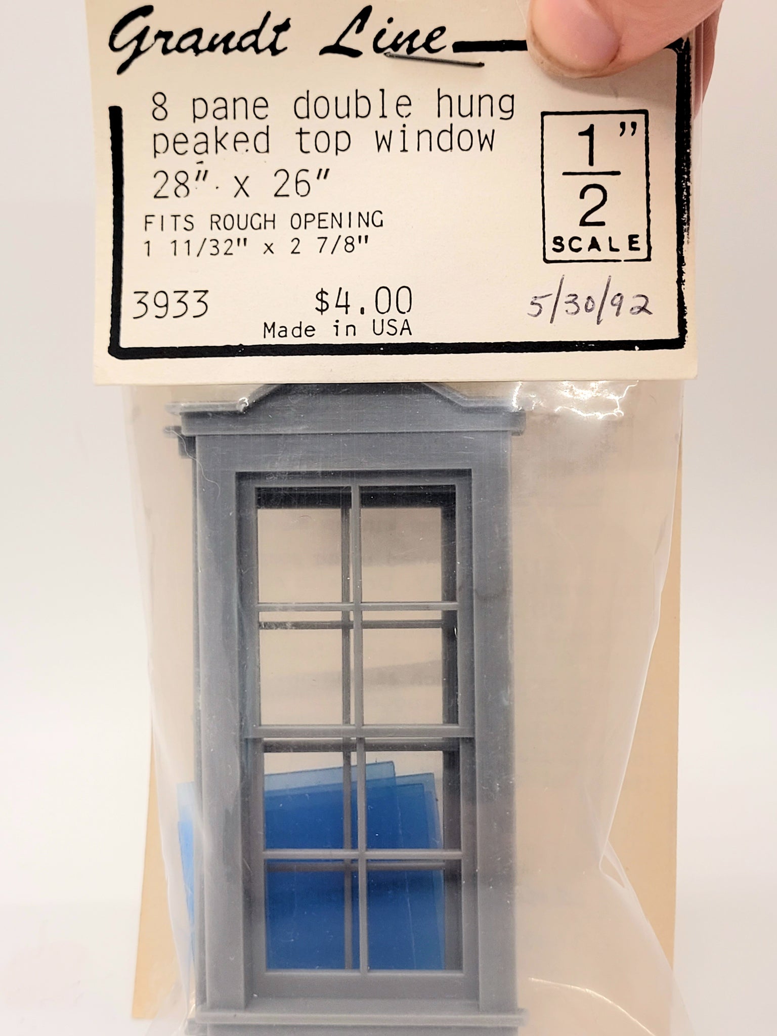 This is a Grandt Line 8 Pane Double Hung Peaked Top Window. 28" x 26"