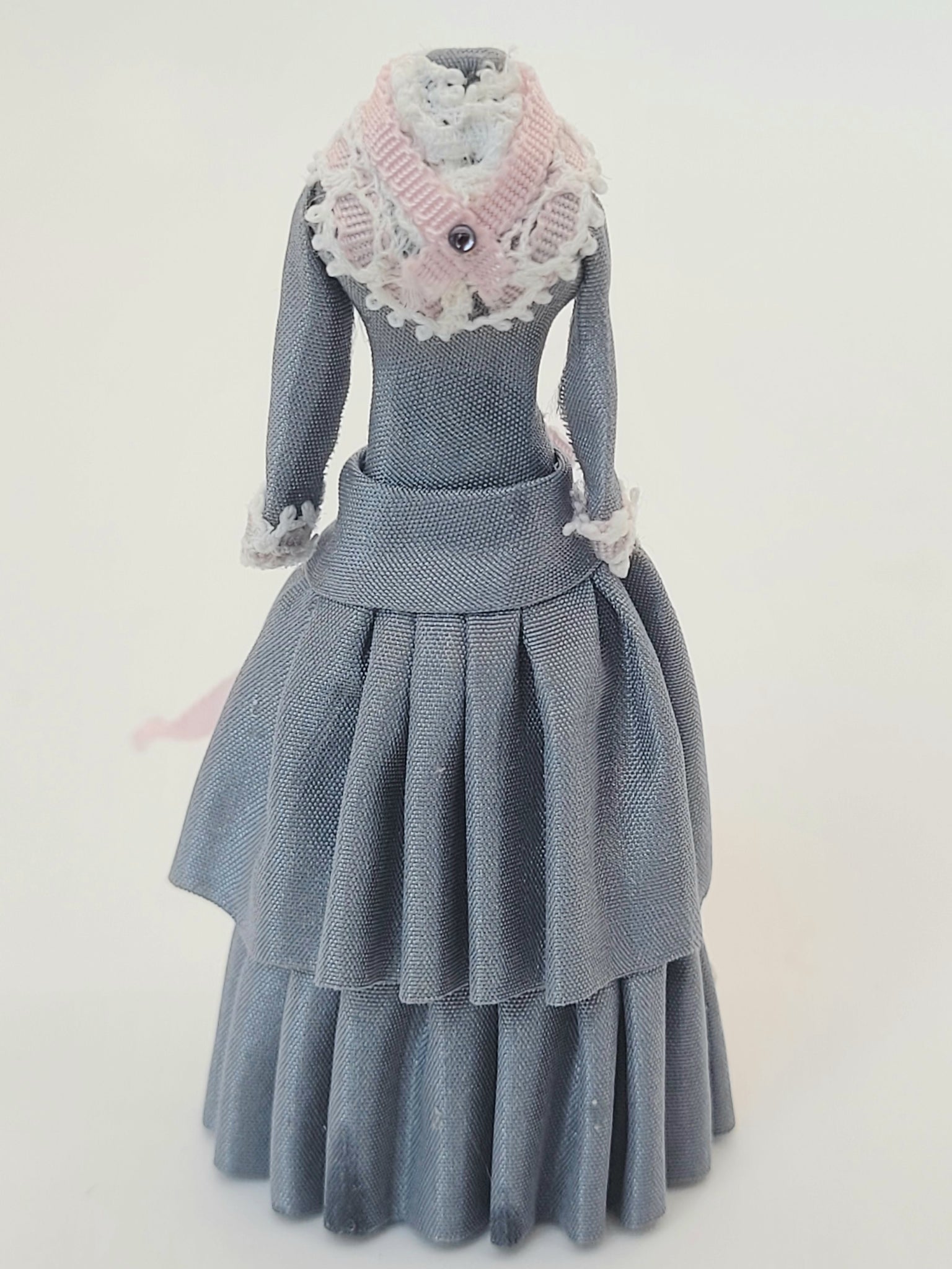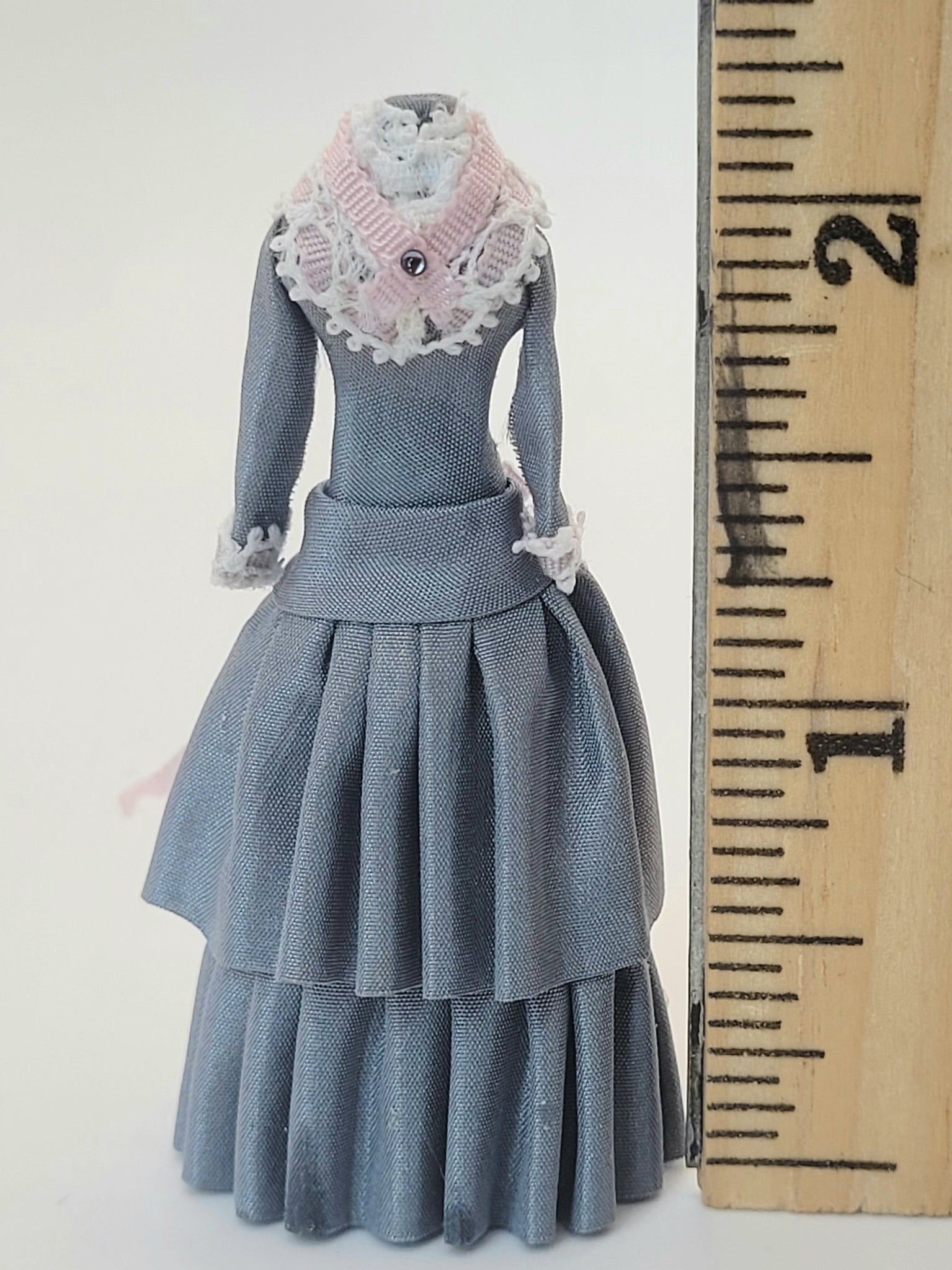 This is a Handmade Blue Victorian-Style Dress on a Mannequin.