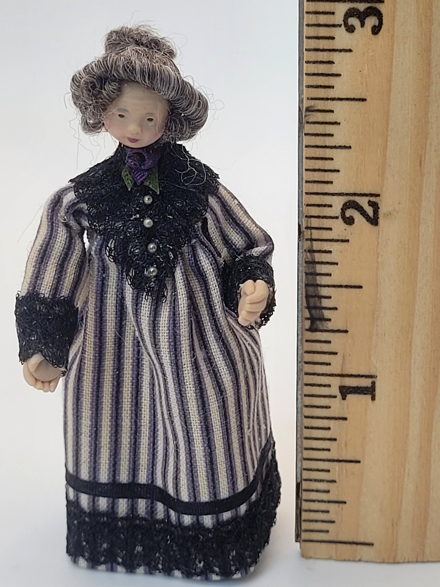 This is a Handmade Grandma Doll in Victorian Striped Dress.