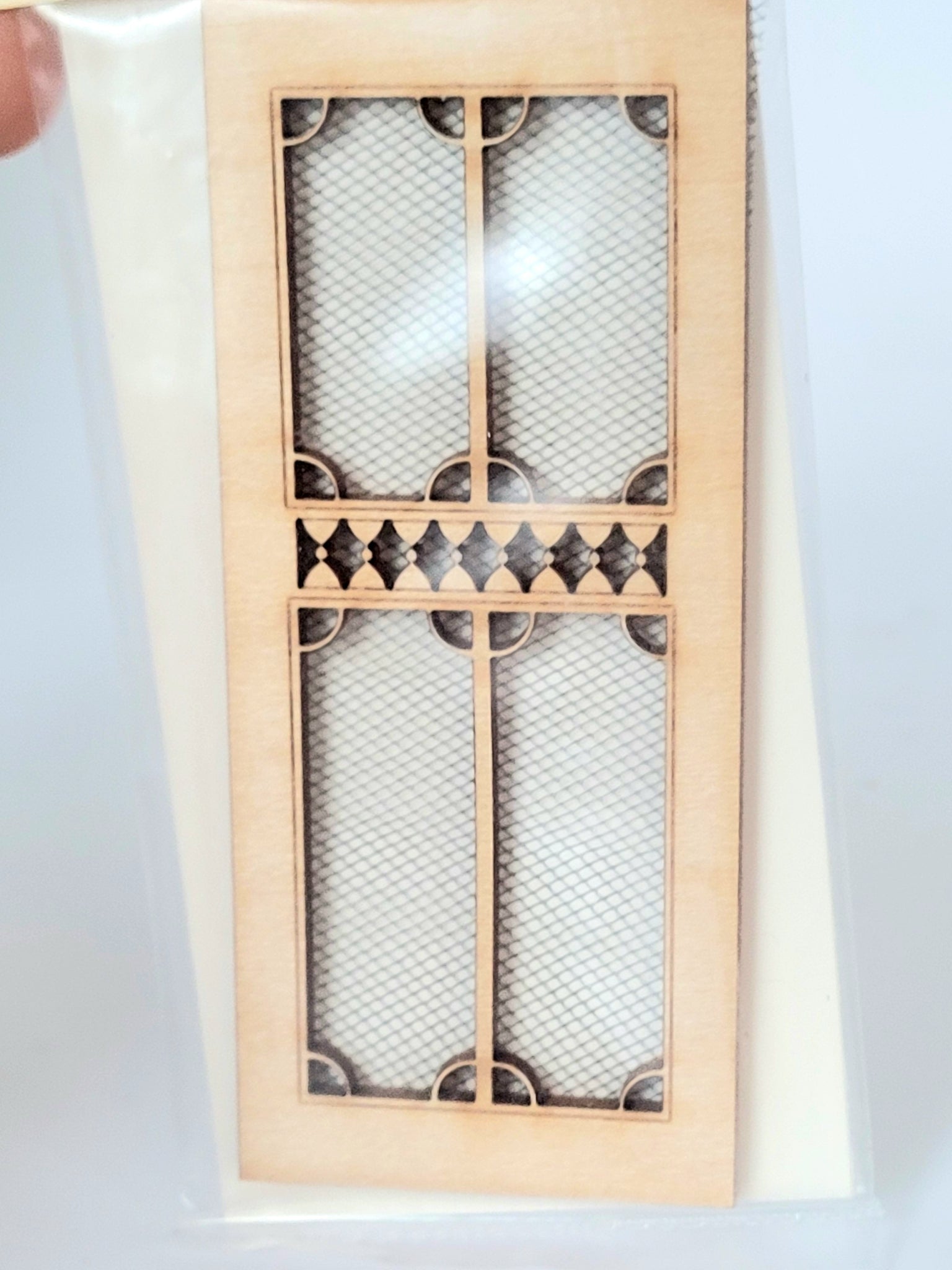 This is a Laser Tech Victorian Screen Door with Ornate Carving Patterns. The measurements are: 1 7/16" x 3 5/16"