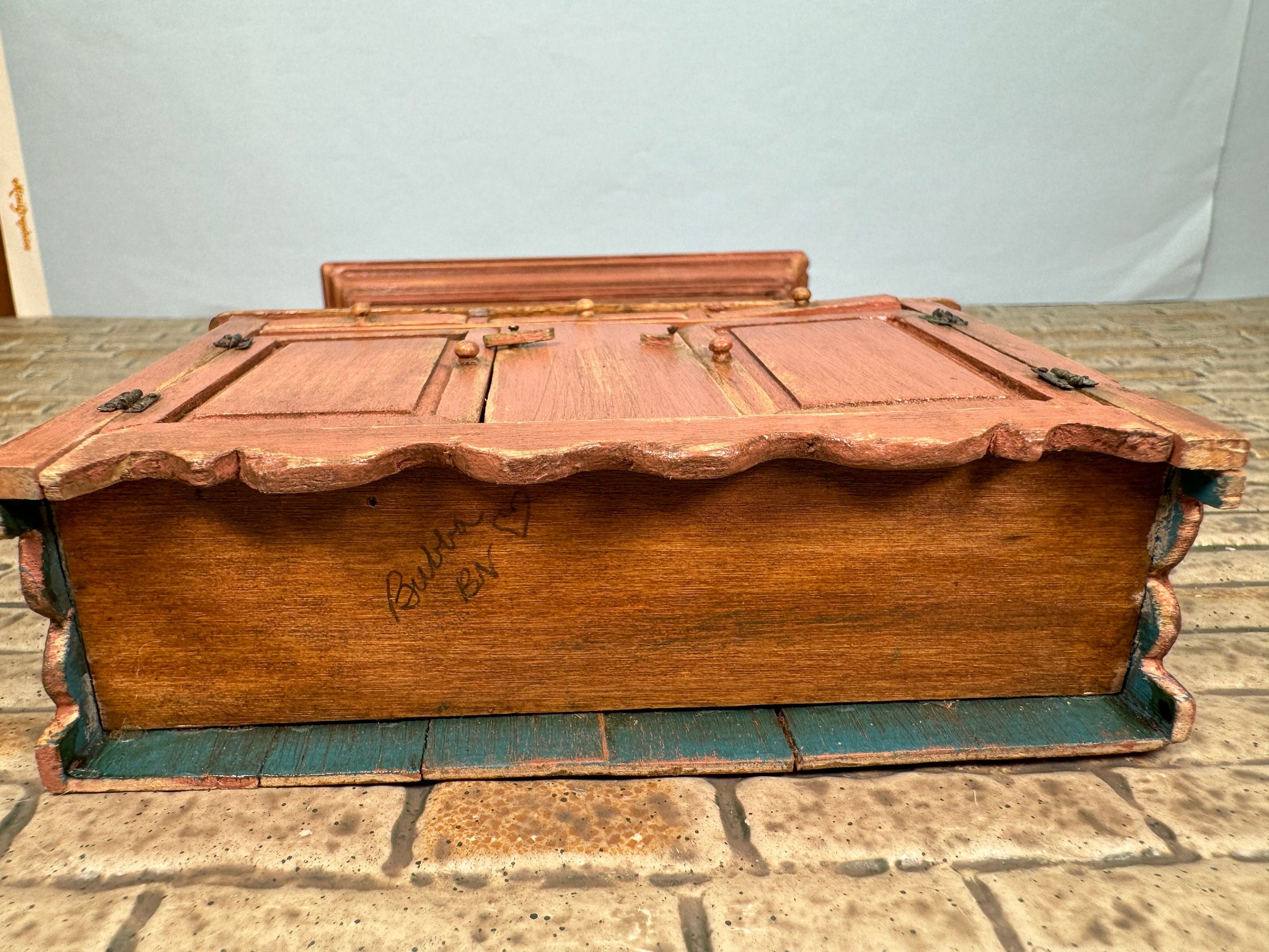 This is a beautiful handmade piece by Barbara Vajnar. Barbara sadly passed away recently and we are selling her personal collection of pieces she made. Her work is nothing short of incredible. This is an upper cabinet.