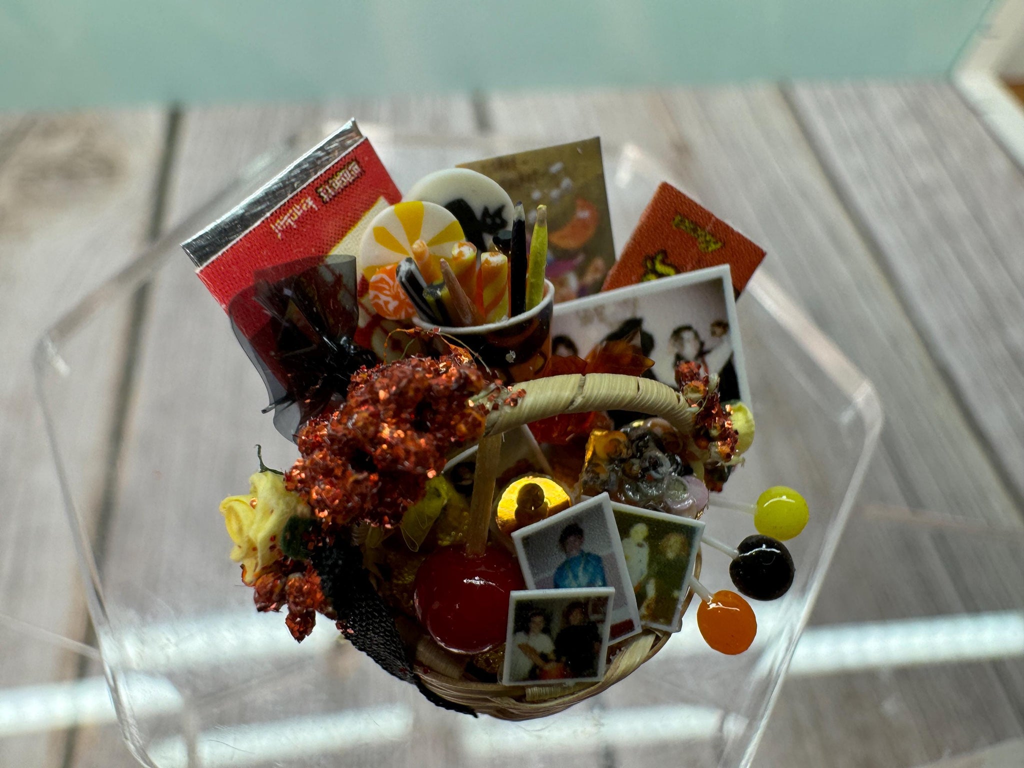 Dollhouse Miniature ~ Artisan Decorated Handmade Halloween Candy Gift Basket Autumn Fall