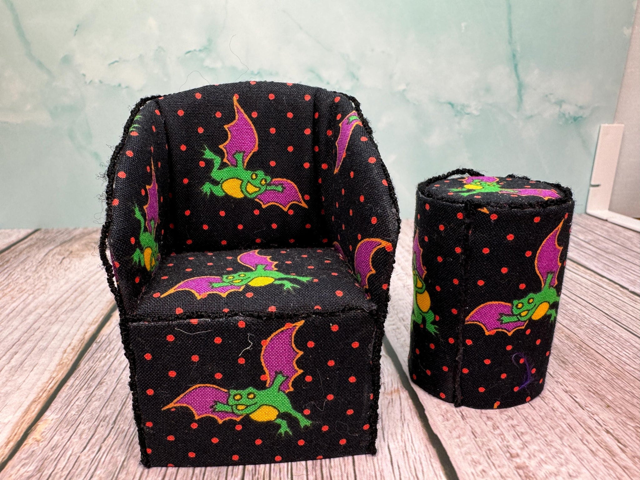 Dollhouse Miniature ~ Artisan Handmade 2 Piece Halloween Chair & Table Set