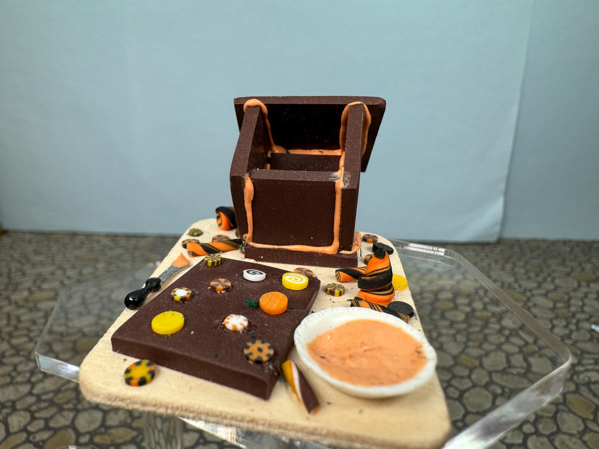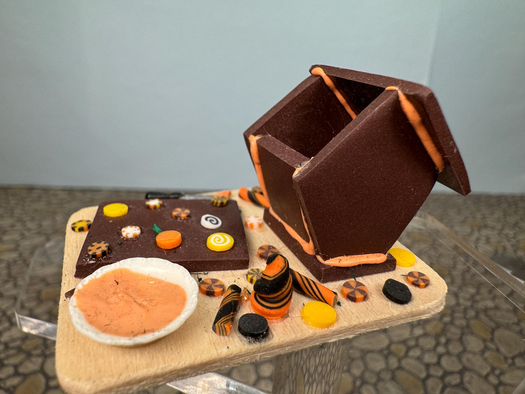 Dollhouse Miniature ~ Artisan Handmade Halloween Gingerbread House Cutting Board