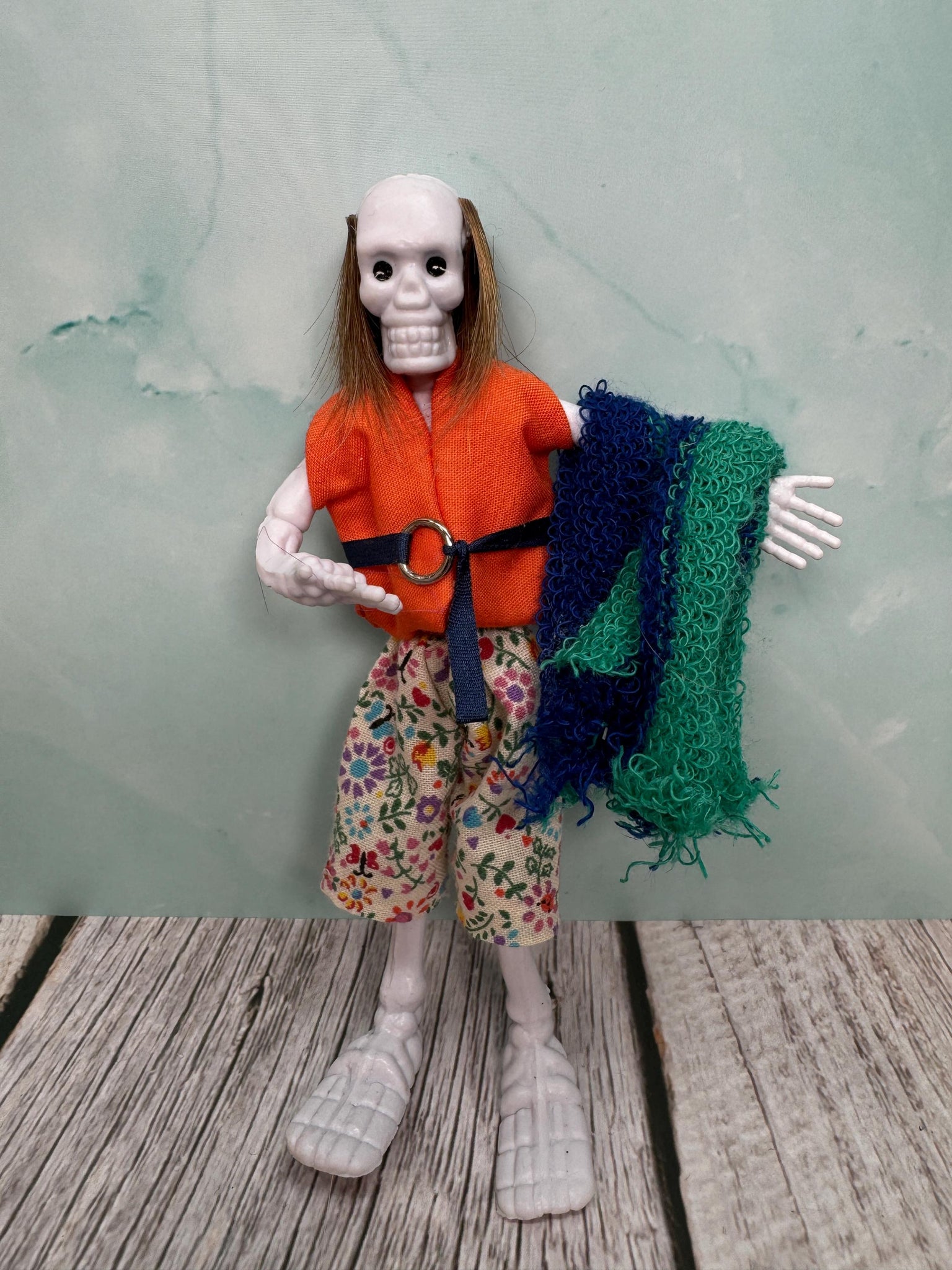 Dollhouse Miniature ~ Artisan Handmade Halloween Skeleton Beach Bum Doll