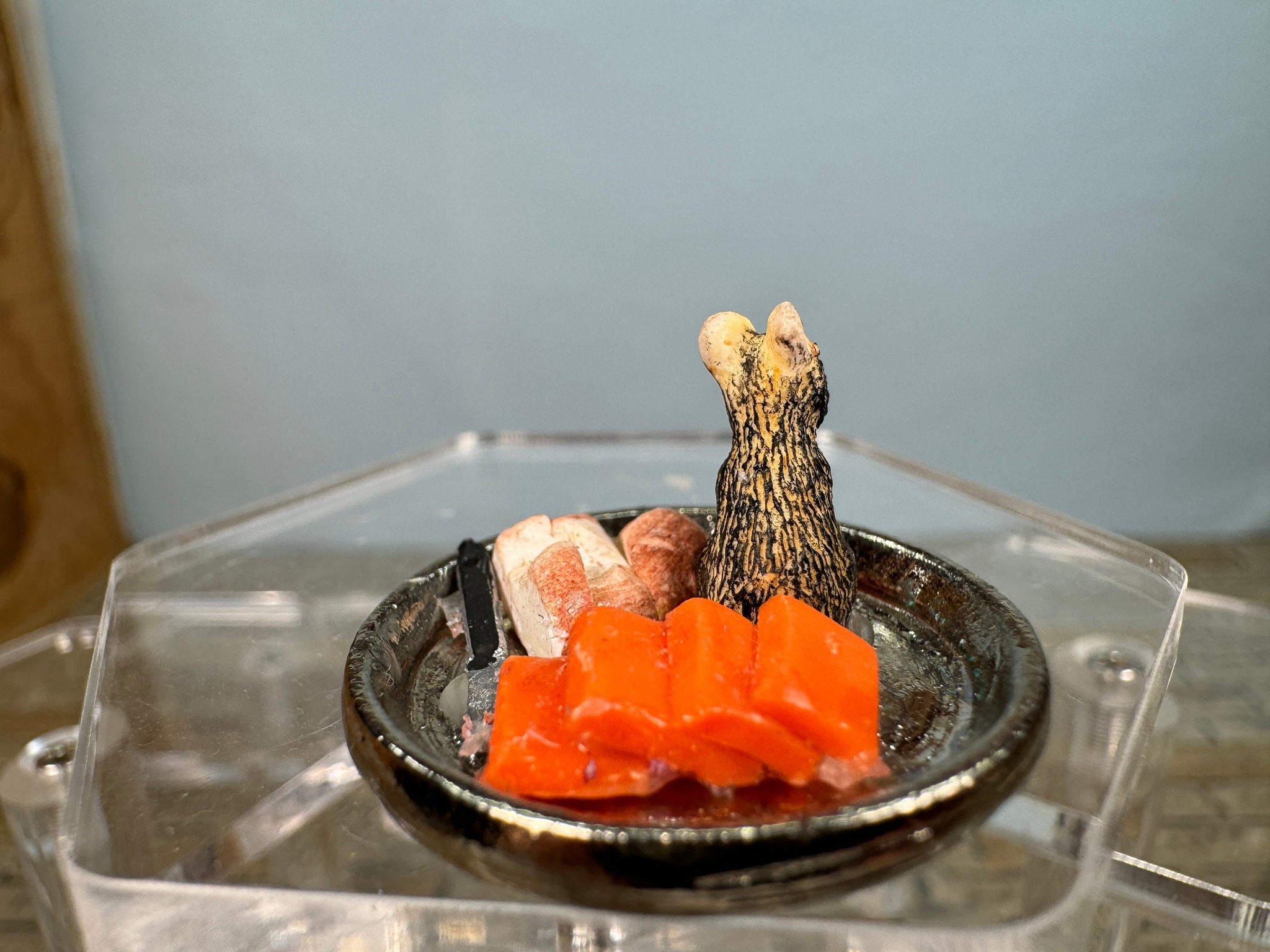 Dollhouse Miniature ~ Artisan Handmade Mouse Eating Cherries & Cheese Tray