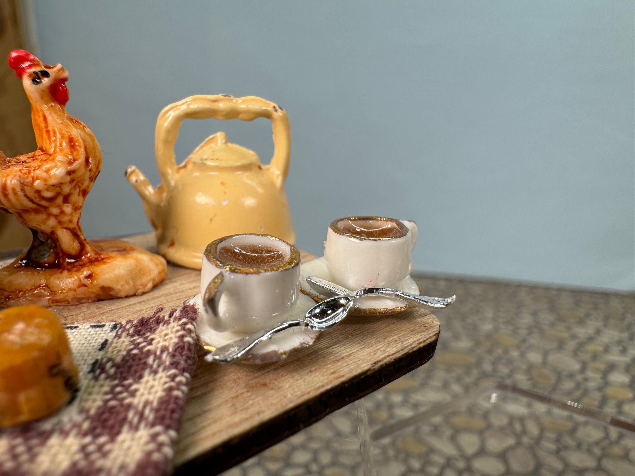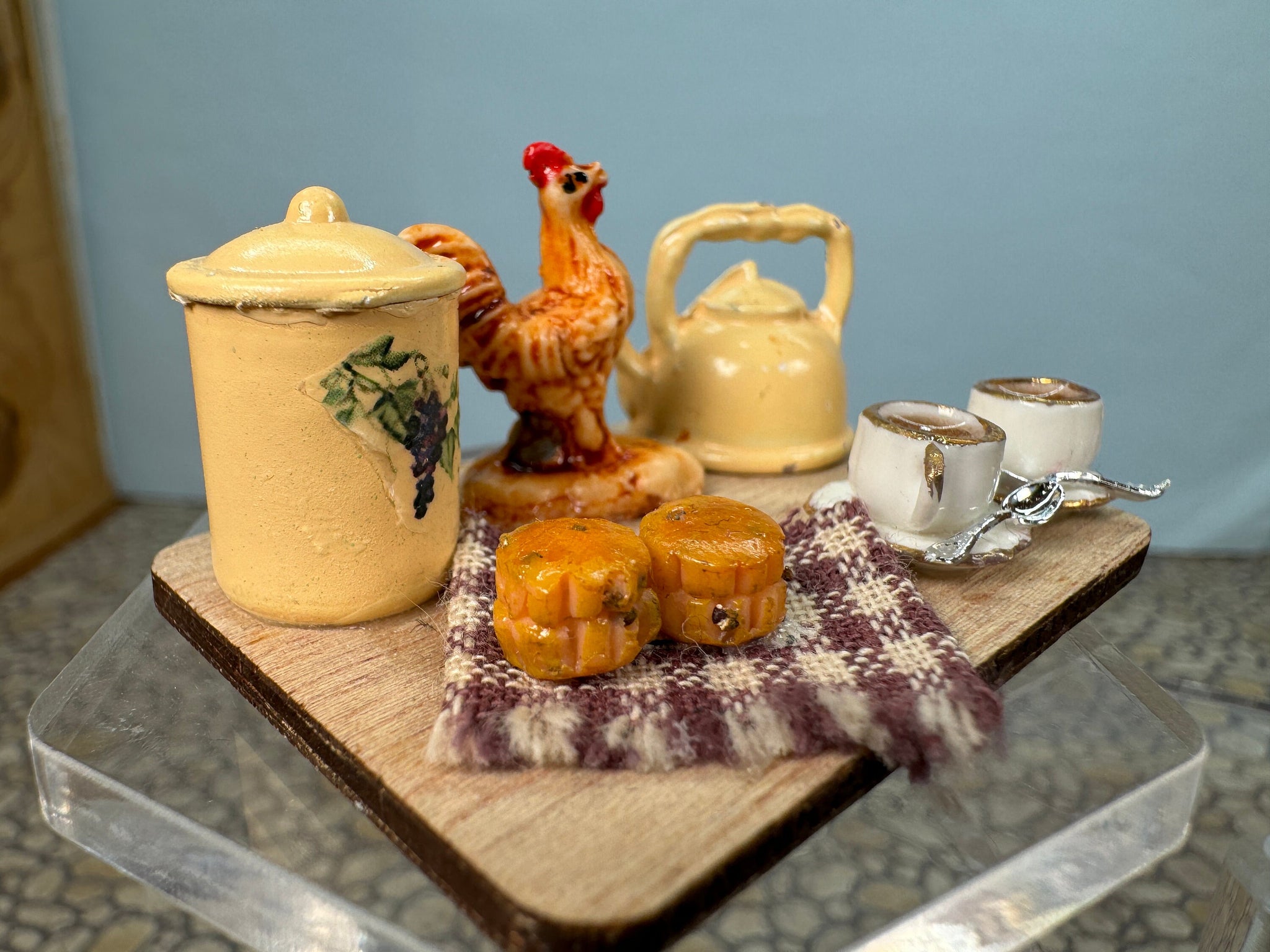 Dollhouse Miniature ~ Artisan Handmade Tea & Scones Breakfast Cutting Board