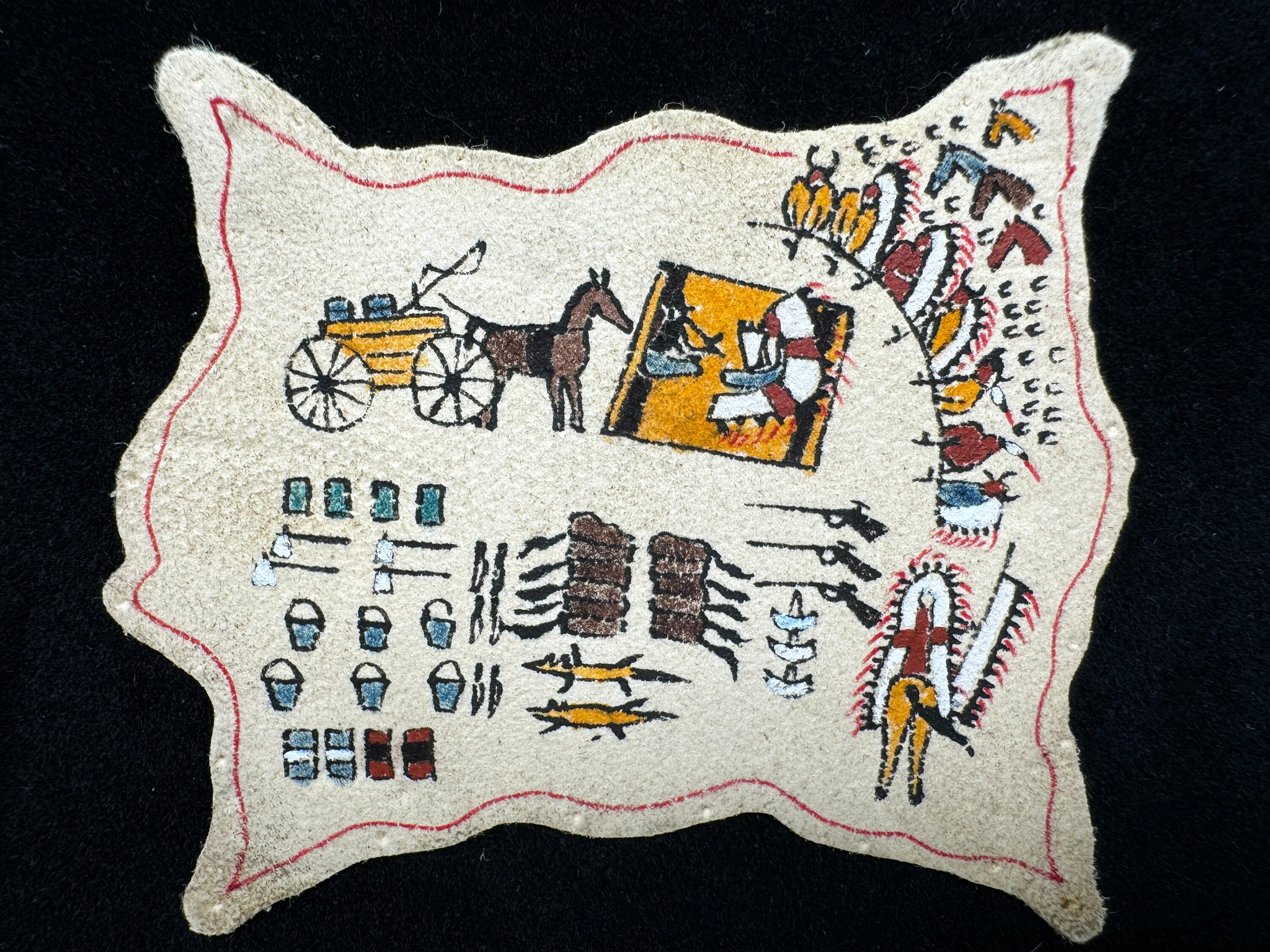 This is a beautiful handmade piece on real leather hide by Rainbow Hand.