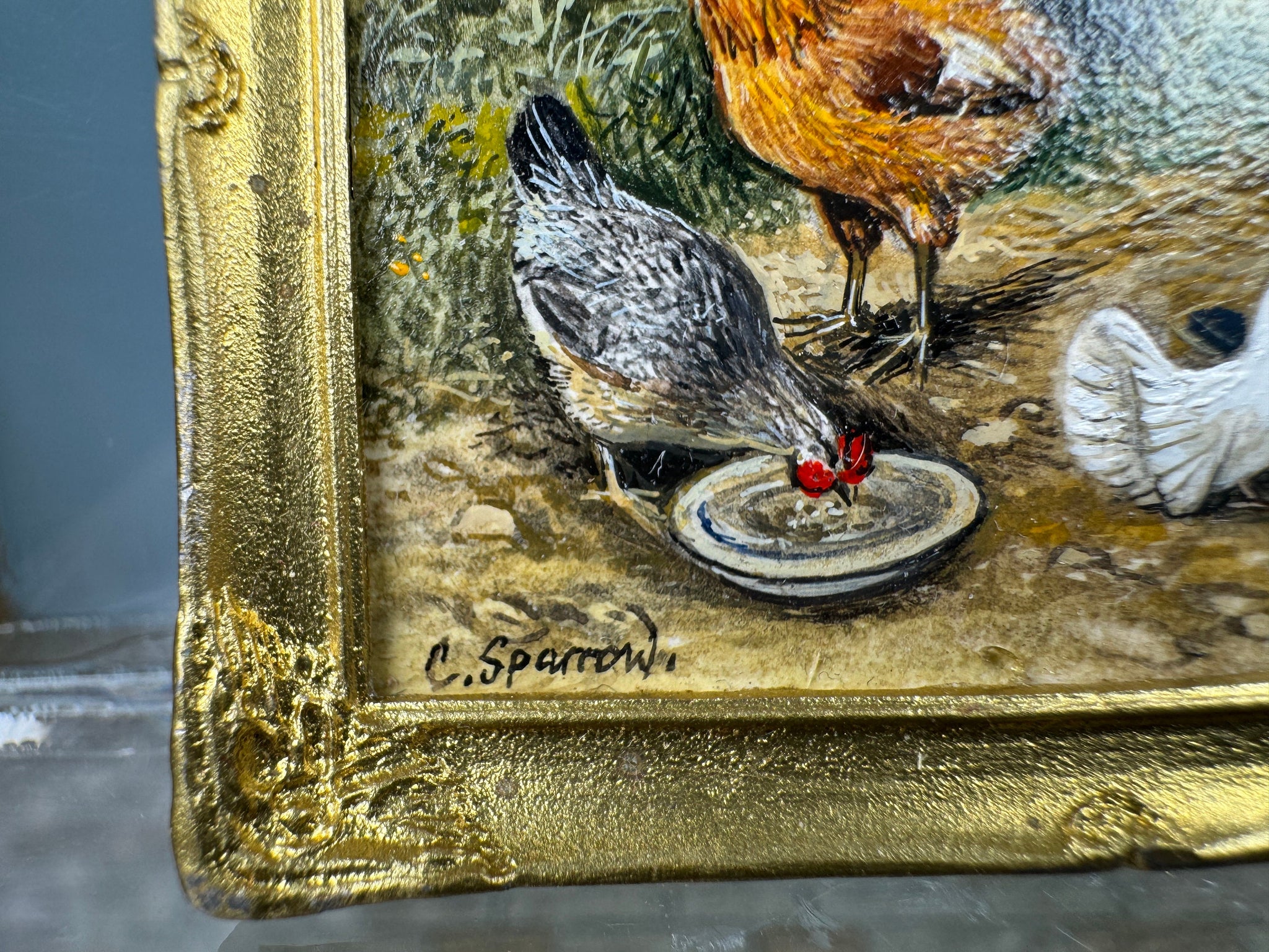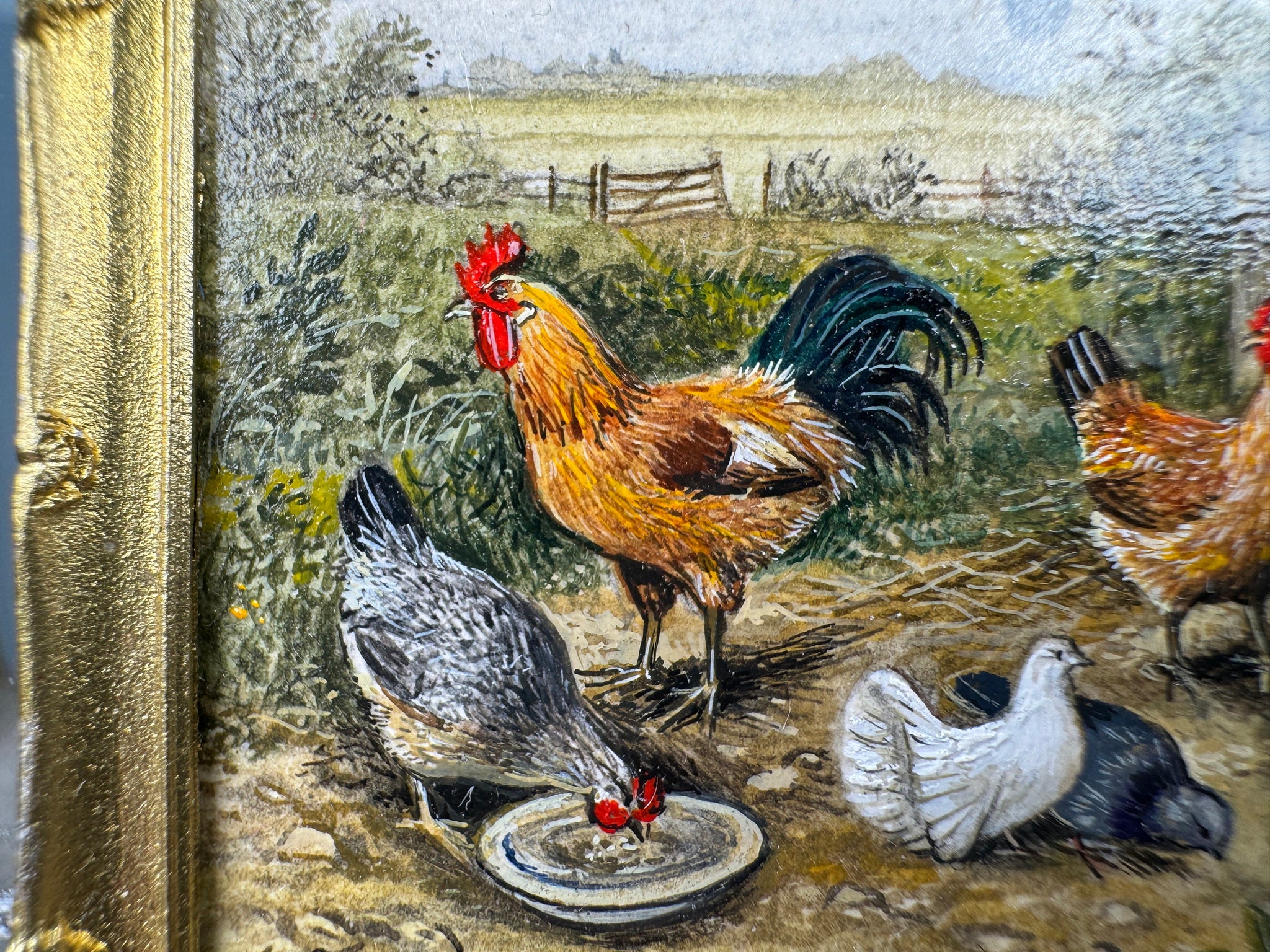 Dollhouse Miniature ~ Artist C. Sparrow Chickens Grazing Painting