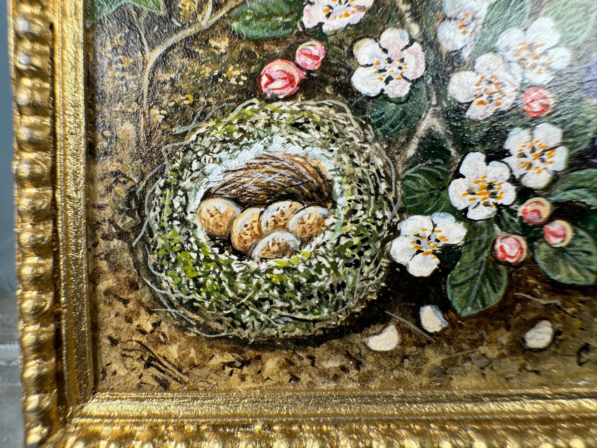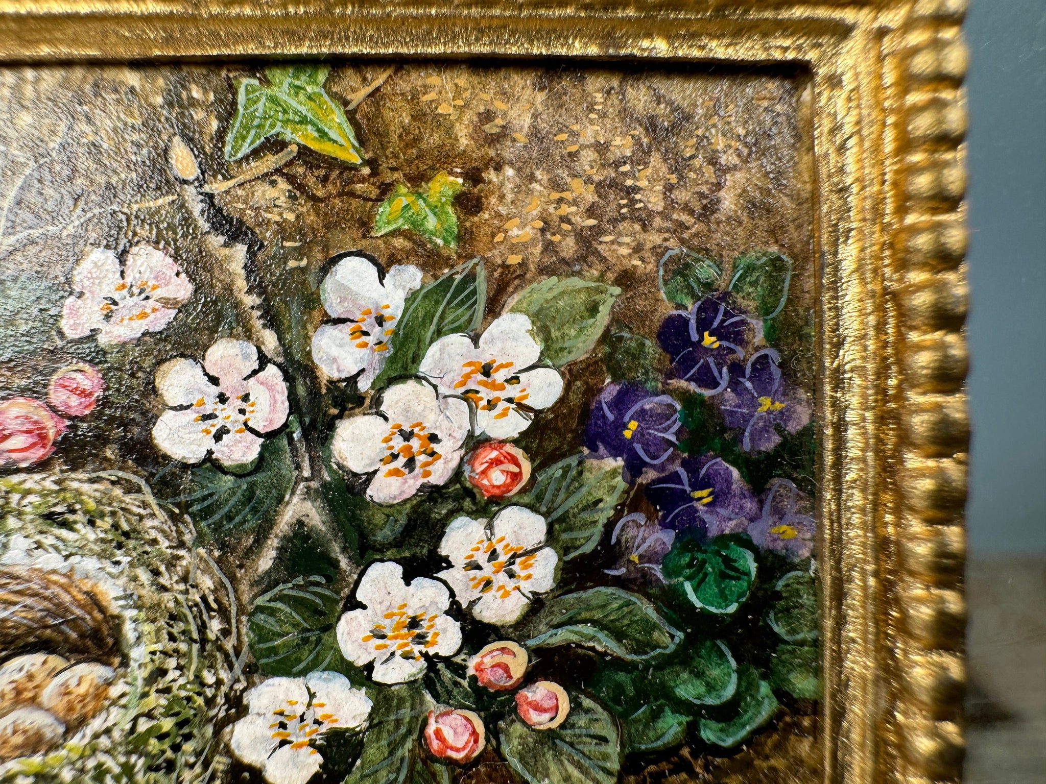 Dollhouse Miniature ~ Artist C. Sparrow Flowers and Birds Nest Painting