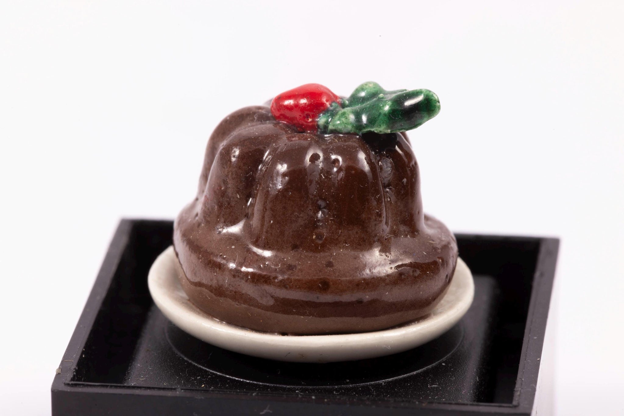 Dollhouse Miniature ~ Deborah McKnight Plum Pudding on Plate - Handmade