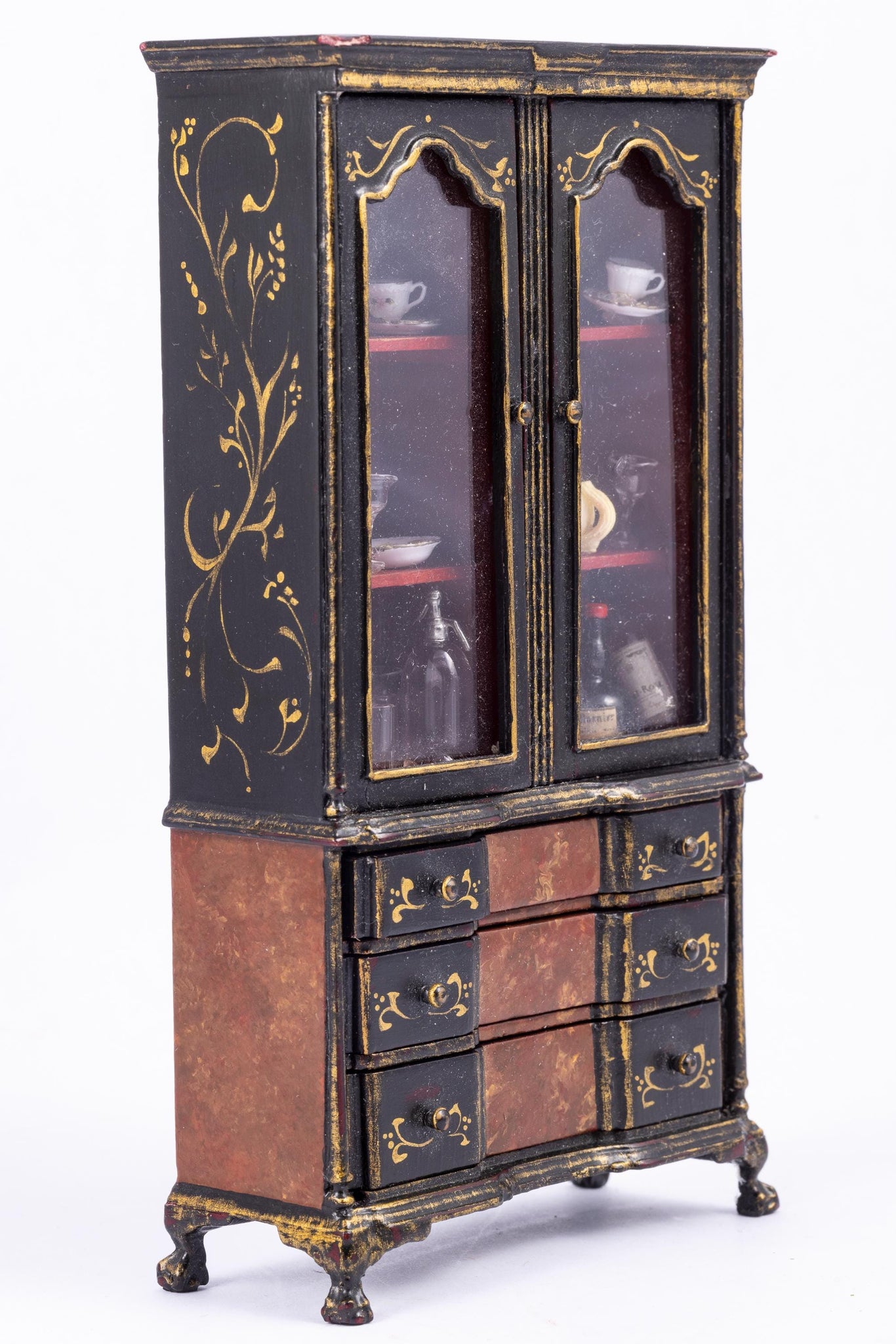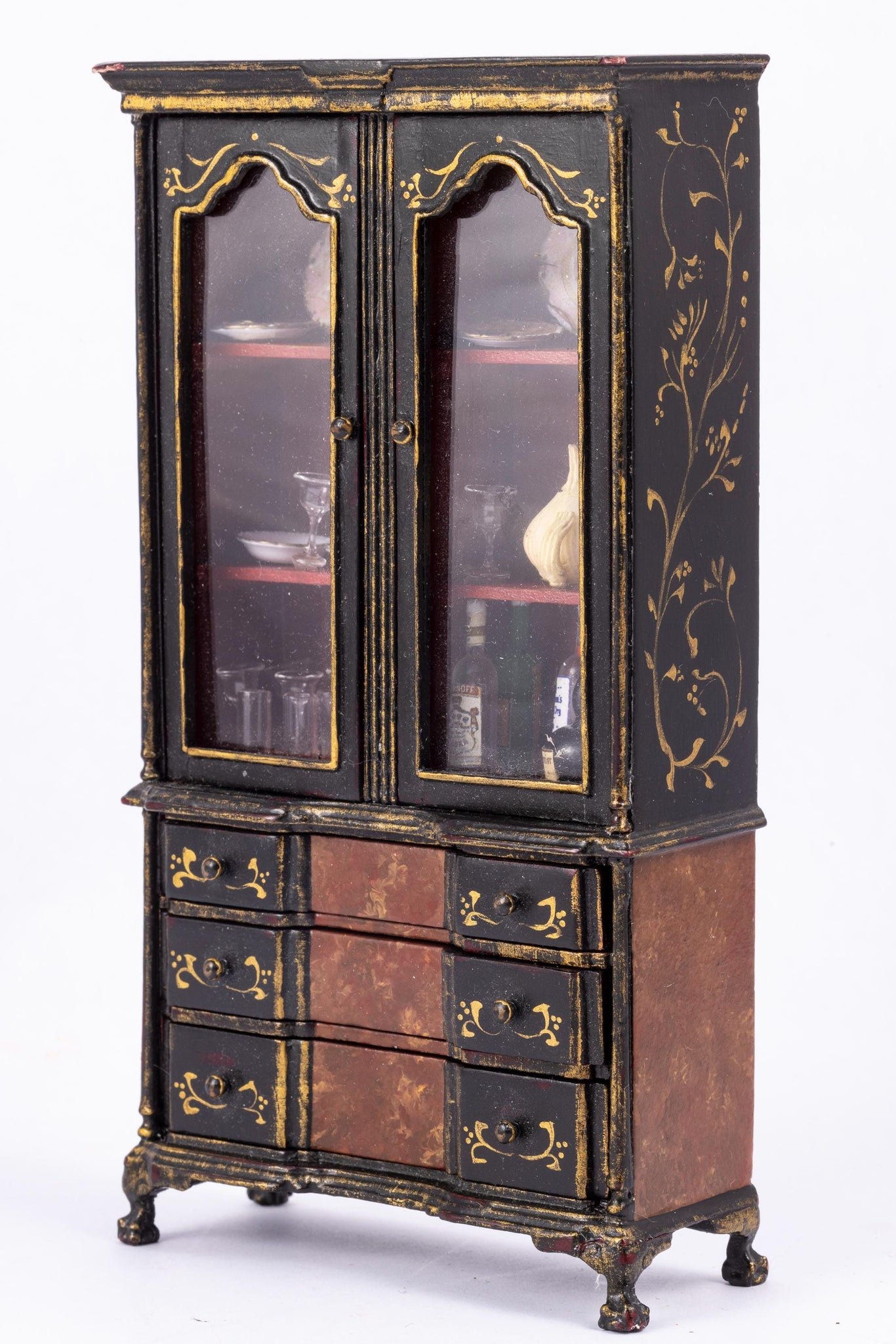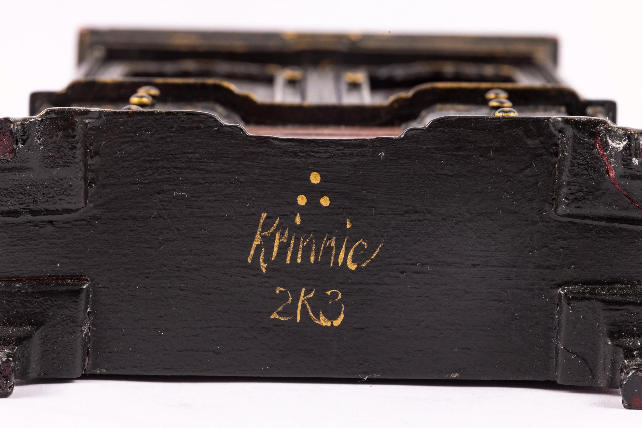 This is a hand painted hutch/cabinet signed Krinnie, 2k3. There are glasses, seltzer bottle, plates and cups inside the cabinet. The large white onion is not included. A terrific piece from Ursula Sauerberg's estate.