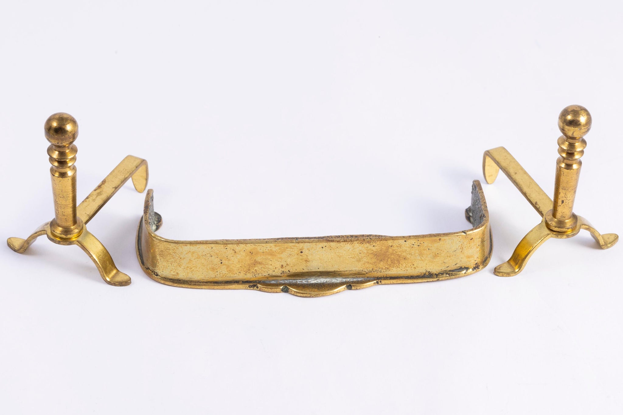 Dollhouse Miniature ~ English Brass Fireplace Andirons & Fender