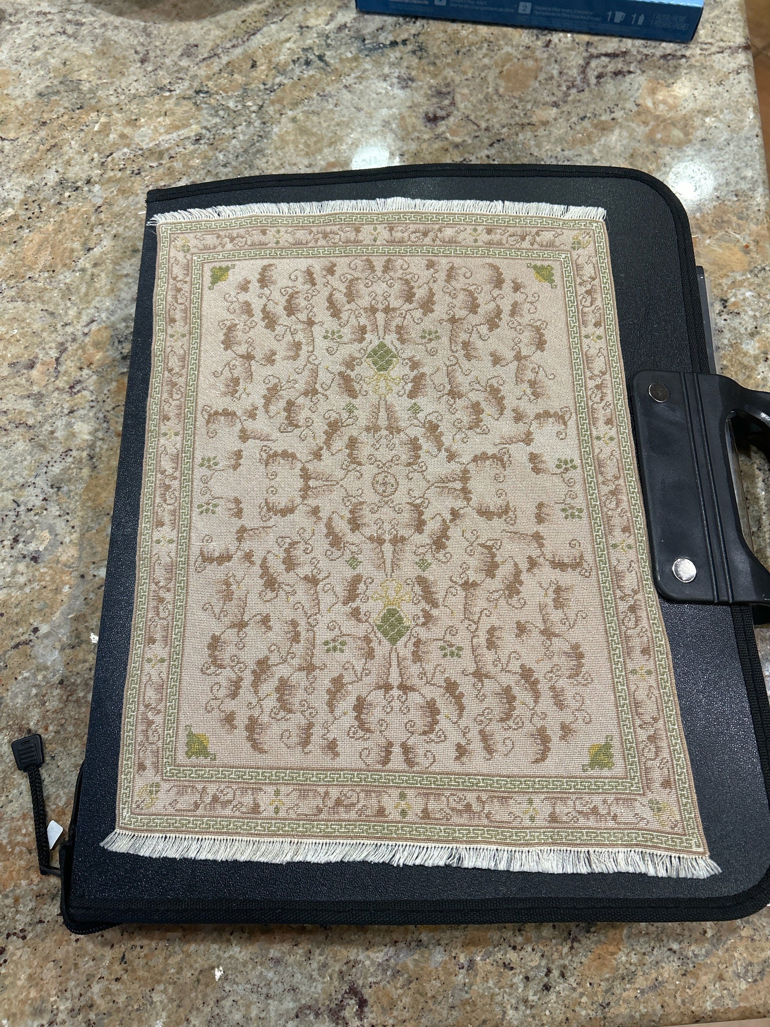 Add a touch of elegance to your dollhouse with this beautiful handmade needlepoint rug by Ursula Sauerberg who was a trained seamstress from Germany. Ursula worked on needlepoint every single day of her life until she sadly passed away recently. The rug features a stunning petit point design and is the perfect addition to any dollhouse furniture collection. Made in the United States, this 1:12 scale rug is a true work of art that will impress even the most discerning collector. The rug is carefully crafted and will add a touch of sophistication to any dollhouse. Don't miss out on the chance to own this exquisite piece of art.