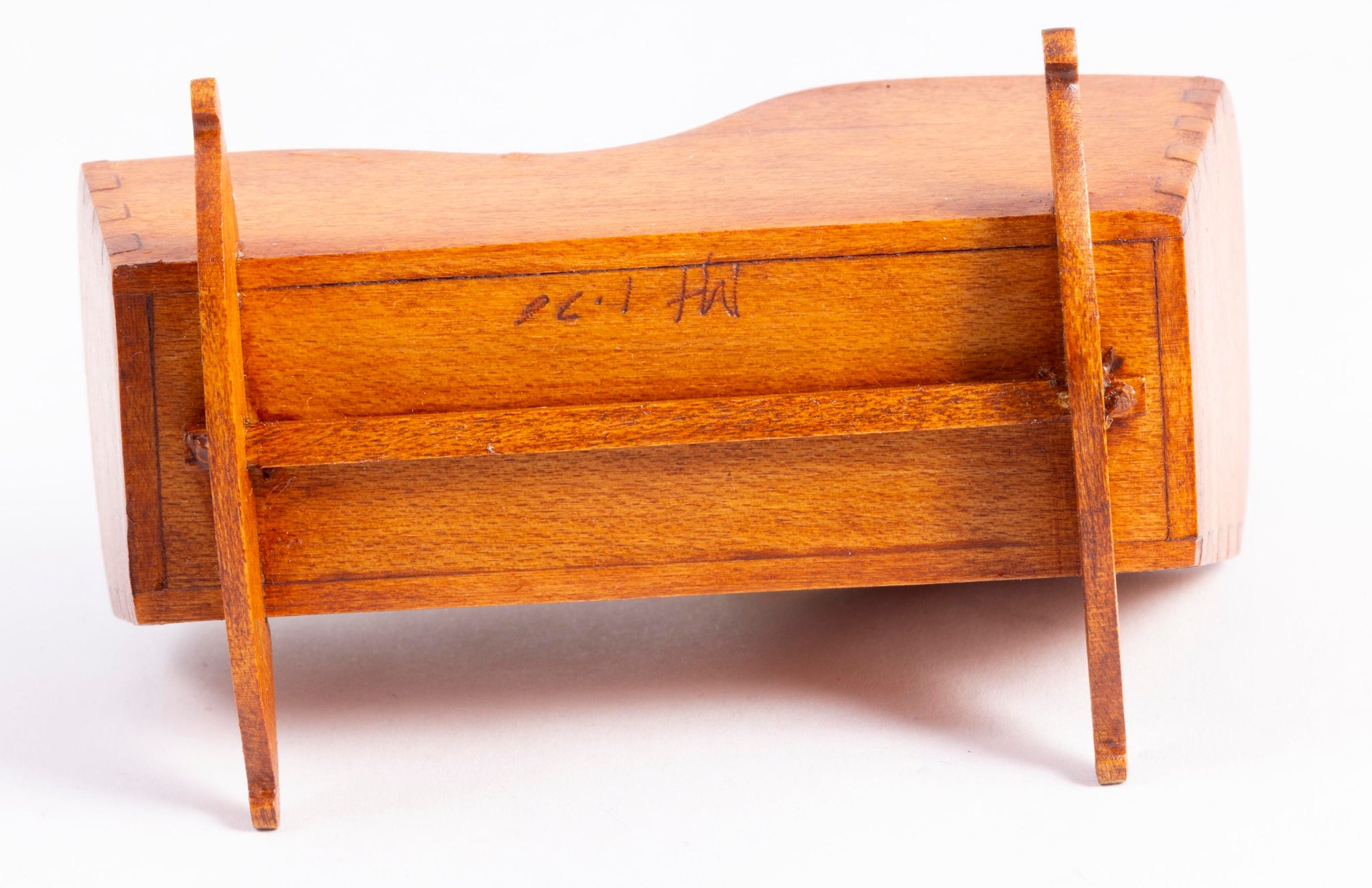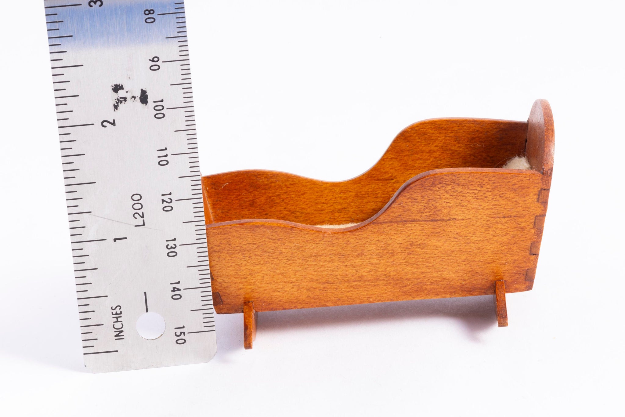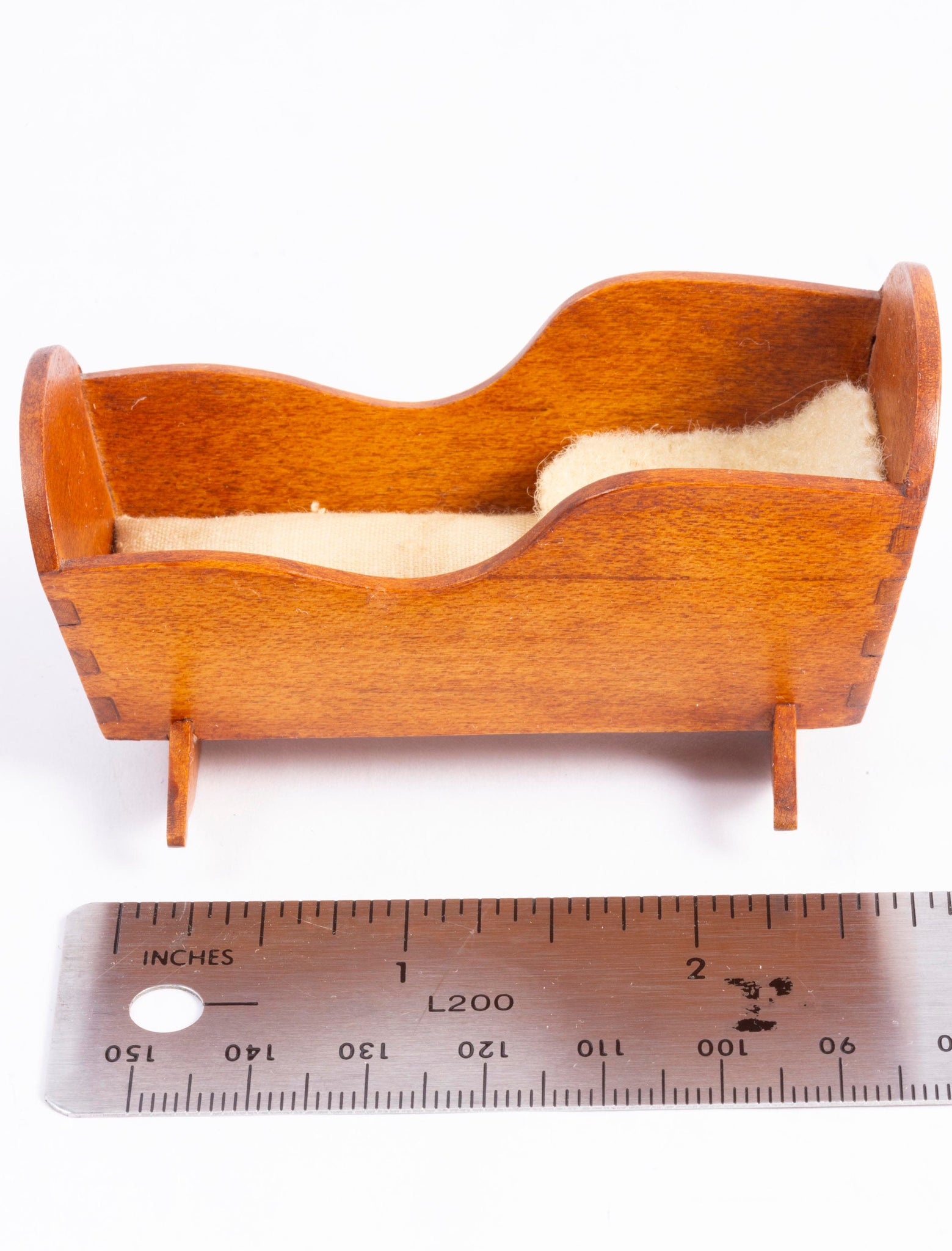 This is a hand made George Hoffman wooden rocking cradle. There's a peice of soft fabric in the cradle, not attached. Nice dove tail work. IGMA founder, George Hoffman.